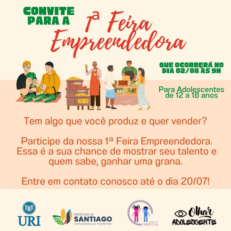 Com o objetivo de incentivar o empreendedorismo juvenil, a Feira proporciona experiências práticas e aproxima os adolescentes do universo dos negócios, fortalecendo a autonomia e a criatividade dos participantes. A iniciativa conta com parcerias importantes, como a Universidade Regional Integrada do Alto Uruguai e das Missões (URI) Câmpus de Santiago, o Polo de Modernização Tecnológica do Vale do Jaguari (PMTVJ) e as Secretarias de Desenvolvimento Social e Econômico do município, além do apoio da Prefeitura e do COMDICA.