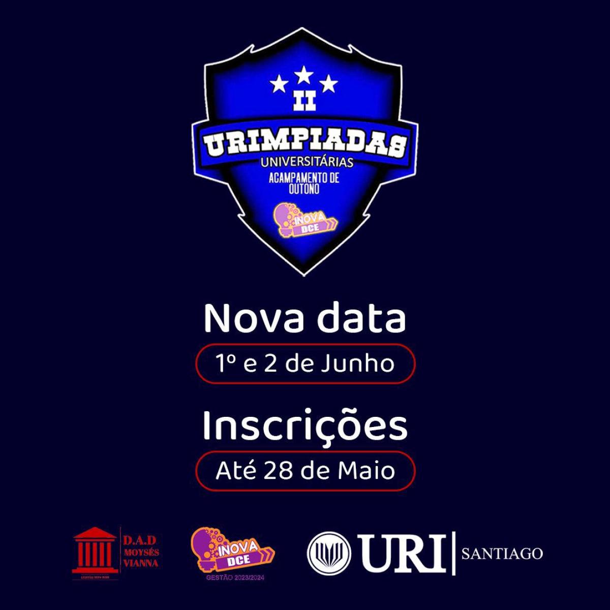O Diretório Central dos Estudantes (DCE) da Universidade Regional Integrada do Alto Uruguai e das Missões (URI), Câmpus de Santiago, informa que a 2ª edição das Olimpíadas Universitárias já possui data confirmada. A II OLIMPÍADAS acontecerá nos dias 1º e 2 de junho, na Associação dos Funcionários e Professores da URI Câmpus Santiago (AFURIS).