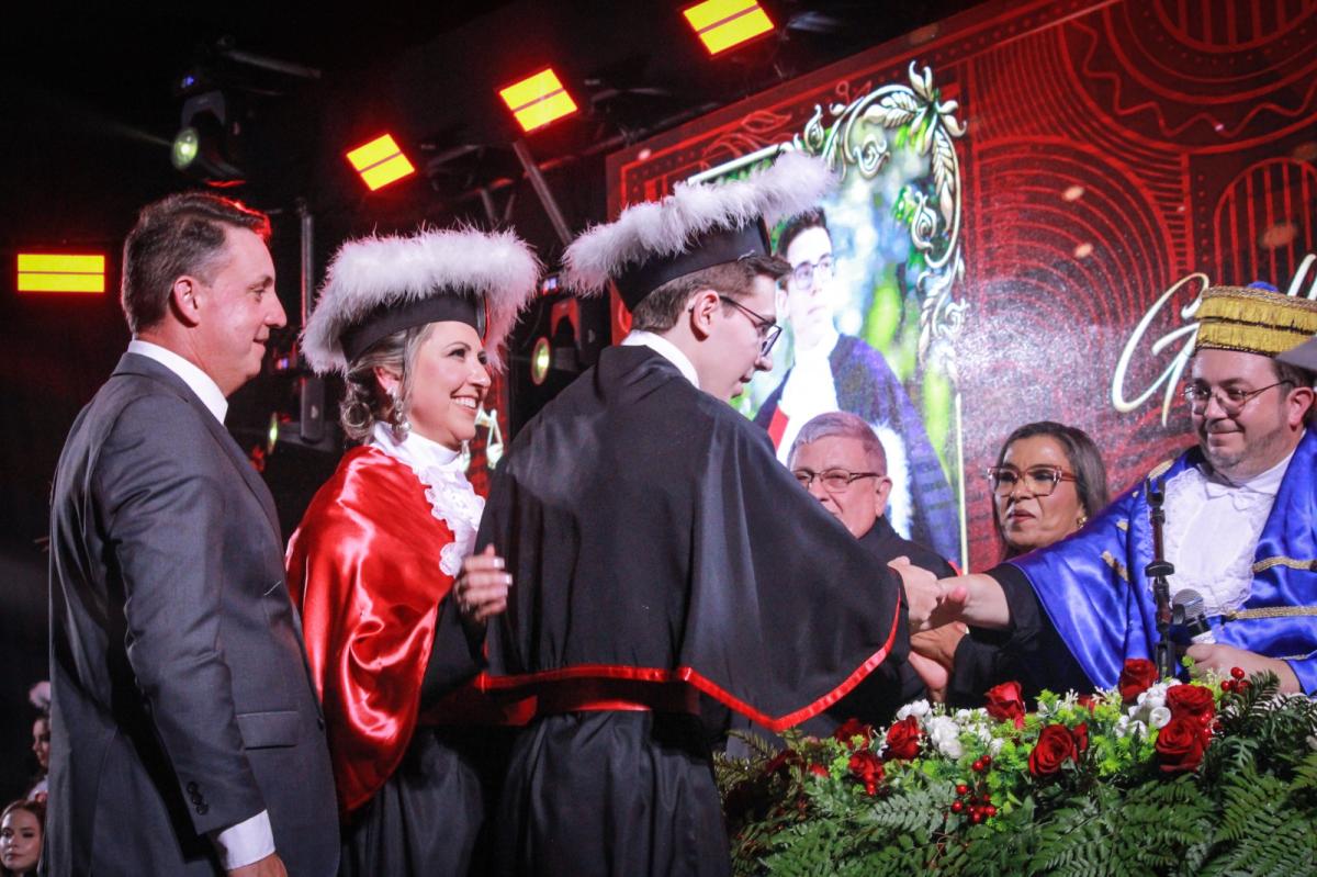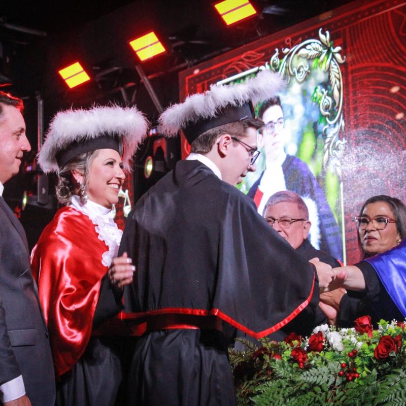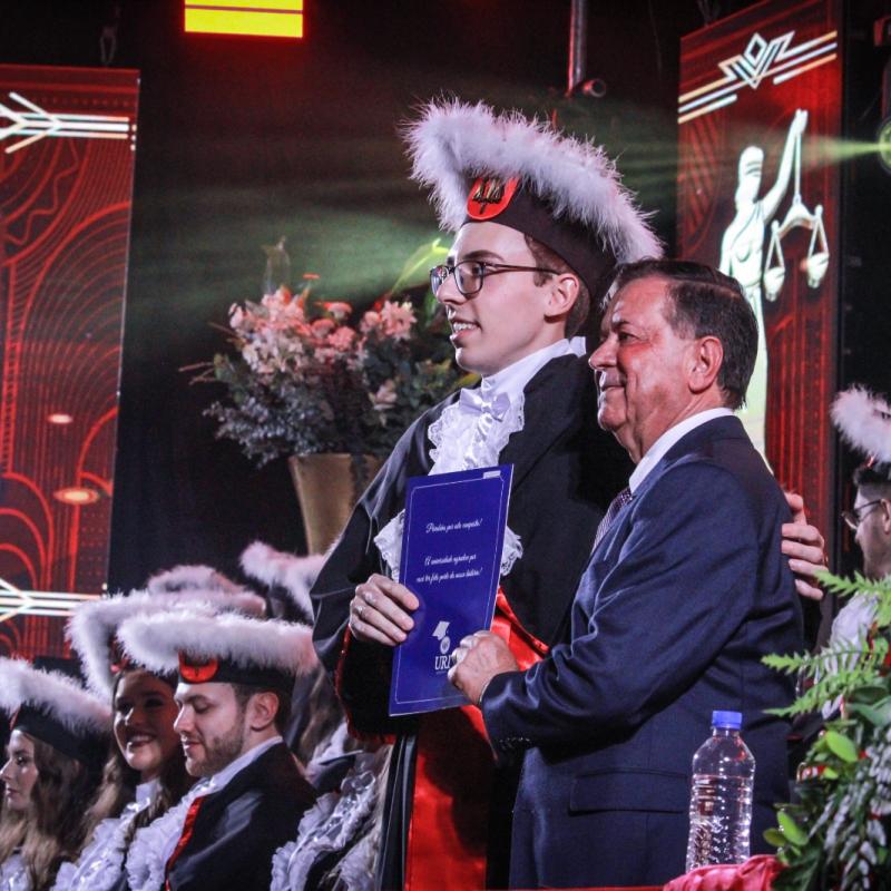 Durante a cerimônia, a formanda Ana Carolina Beltrão Martinuzzi realizou o juramento em nome da turma. O formando Leonardo Dias Minuzzi foi o orador, representando os colegas em pronunciamento marcado pela gratidão, compromisso com a justiça e reconhecimento à formação recebida na URI.