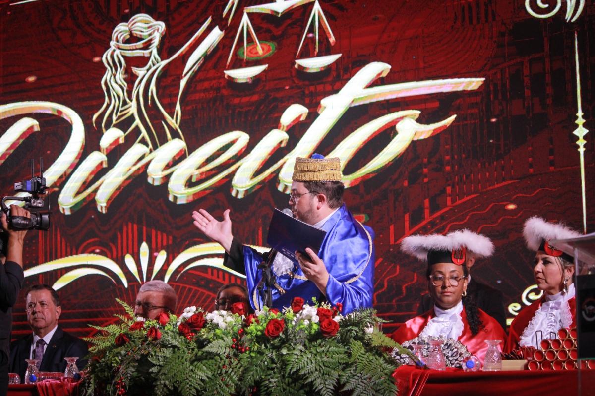 Ao final da solenidade, o Diretor Acadêmico, Prof. Izaque Machado Ribeiro, realizou seu pronunciamento, parabenizando os novos bacharéis, seus familiares e professores, destacando a responsabilidade social, ética e profissional que acompanha o exercício do Direito.
