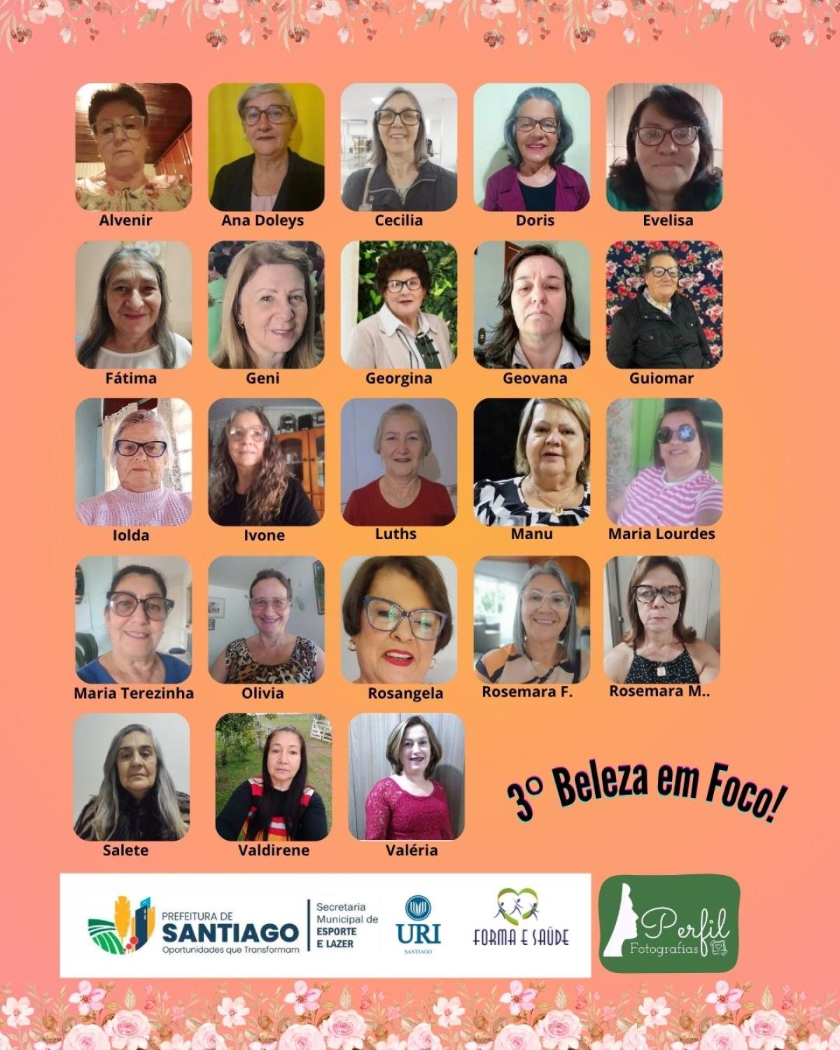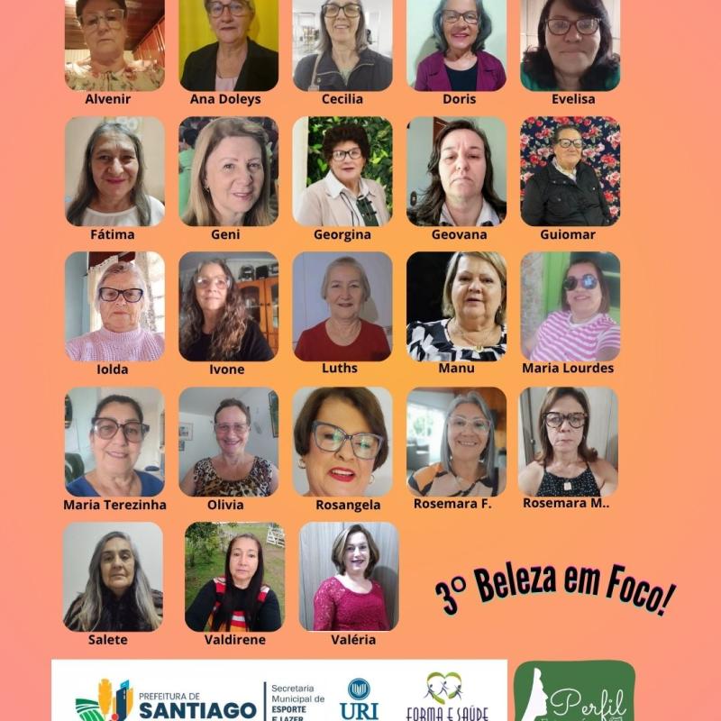 Valorizar a beleza, a autoestima e a individualidade das mulheres da terceira idade. Esse é o principal propósito da 3ª edição do Beleza em Foco, ação integrada ao Projeto Forma e Saúde, realizada pela Secretaria Municipal de Esporte e Lazer e URI Santiago, com apoio da empresa Perfil Fotografias. O ensaio fotográfico desta edição será realizado durante o mês de agosto.