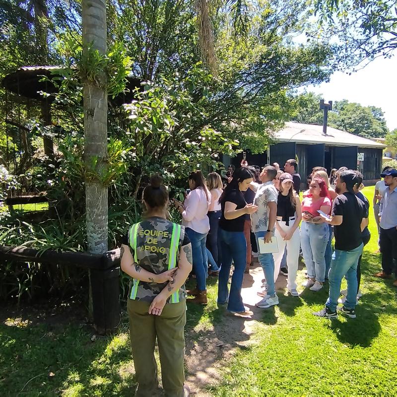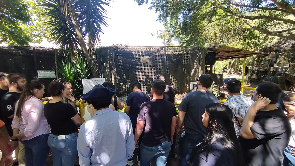 À tarde, a visita prosseguiu com uma excursão ao Zoológico São Braz, onde os estudantes puderam ampliar seu entendimento sobre o manejo, a sanidade e o bem-estar dos animais silvestres. Acompanhados pelas docentes, os acadêmicos observaram de perto os cuidados necessários para garantir a saúde e qualidade de vida dos animais em cativeiro, além de aprofundarem suas discussões sobre os aspectos éticos e profissionais envolvidos no trato com espécies não-domésticas.