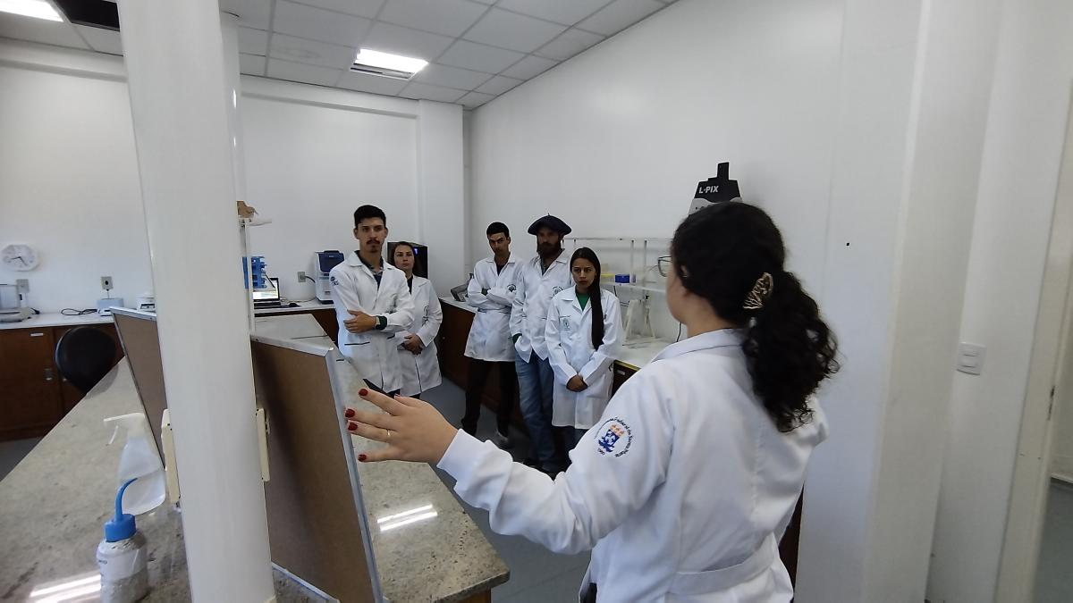 A jornada começou pela manhã, quando os estudantes tiveram a oportunidade de realizar uma vivência prática nos laboratórios de virologia, bacteriologia e parasitologia veterinária da Universidade Federal de Santa Maria (UFSM). Essa experiência permitiu aos acadêmicos aprofundar seus conhecimentos sobre o diagnóstico e controle de doenças infecciosas que afetam tanto animais domésticos quanto silvestres, um componente essencial no estudo das zoonoses.