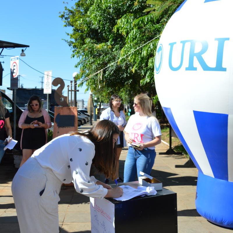Na tarde do último sábado (23), a Universidade Regional Integrada do Alto Uruguai e das Missões (URI), Câmpus de Santiago, realizou a ação 8M em alusão ao Dia Internacional da Mulher, na praça Moisés Viana, das 14h às 17h. O evento que aconteceria no dia 8 de março, precisou ser remarcado em razão das fortes chuvas presentes na data.