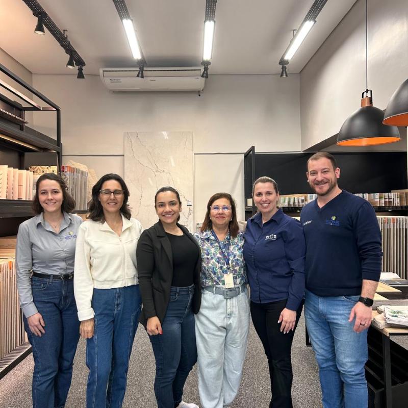 Durante a viagem, os estudantes visitaram a Loja Tetto, especializada em materiais de acabamento, onde puderam conhecer novas tendências, tecnologias e aplicações de produtos voltados ao design de interiores e à execução de obras.