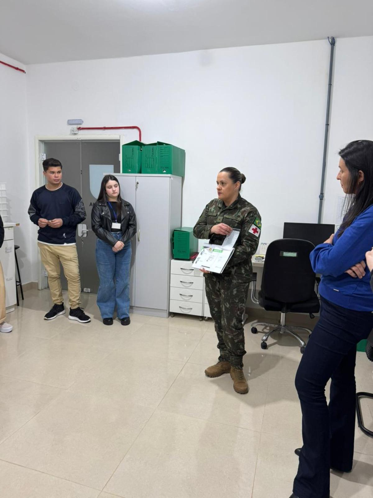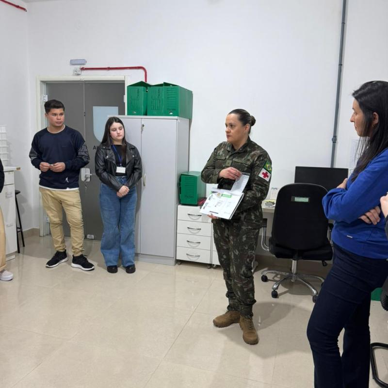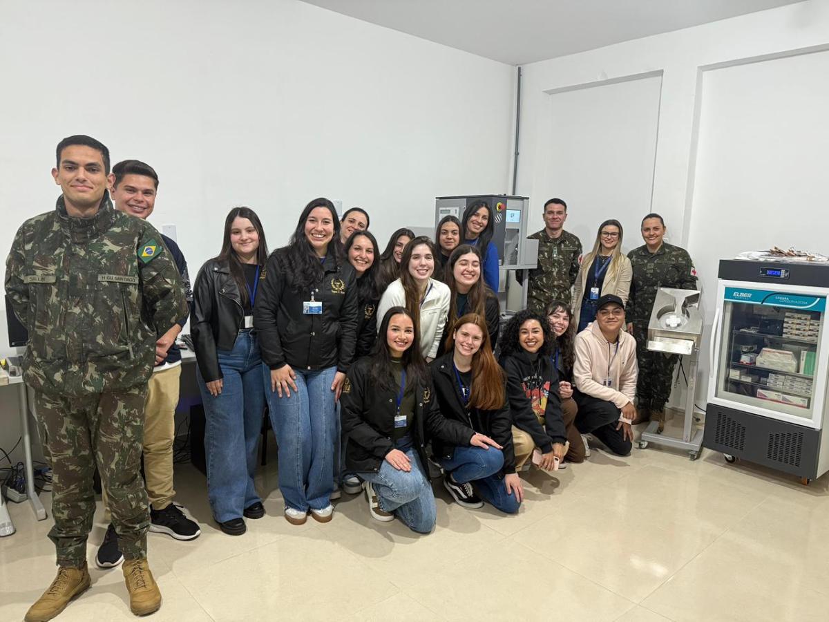 A equipe do hospital, em especial a Tenente Farmacêutica Aline Castro Caurio, apresentou todo o fluxo de trabalho da farmácia hospitalar, destacando a importância da atuação do farmacêutico na gestão de medicamentos em ambiente hospitalar.