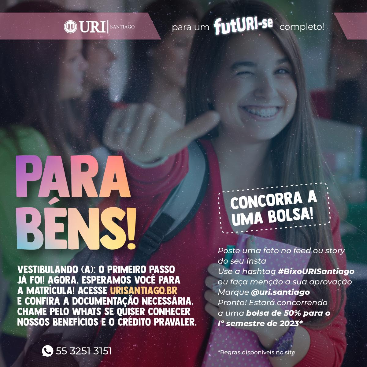 O aprovado deve publicar uma foto no Instagram com a hashtag #BixoURISantiago ou fazer menção à aprovação e precisa marcar @uri.santiago