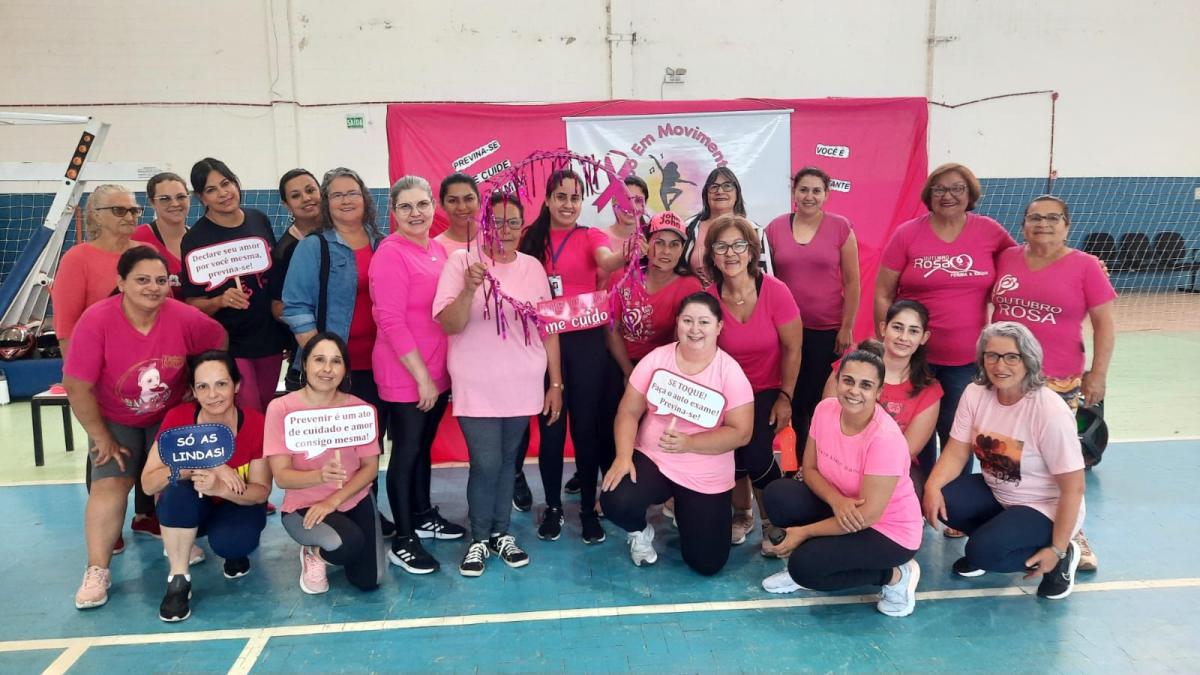 Marcando o fim das atividades alusivas ao Outubro Rosa, o projeto Forma e Saúde, reuniu as participantes do grupo Corpo em Movimento, para o Aulão Rosa. Realizado no dia 31 de outubro, no Ginasião Aureliano de Figueiredo Pinto, o encontro proporcionou muita atividade física e animação.