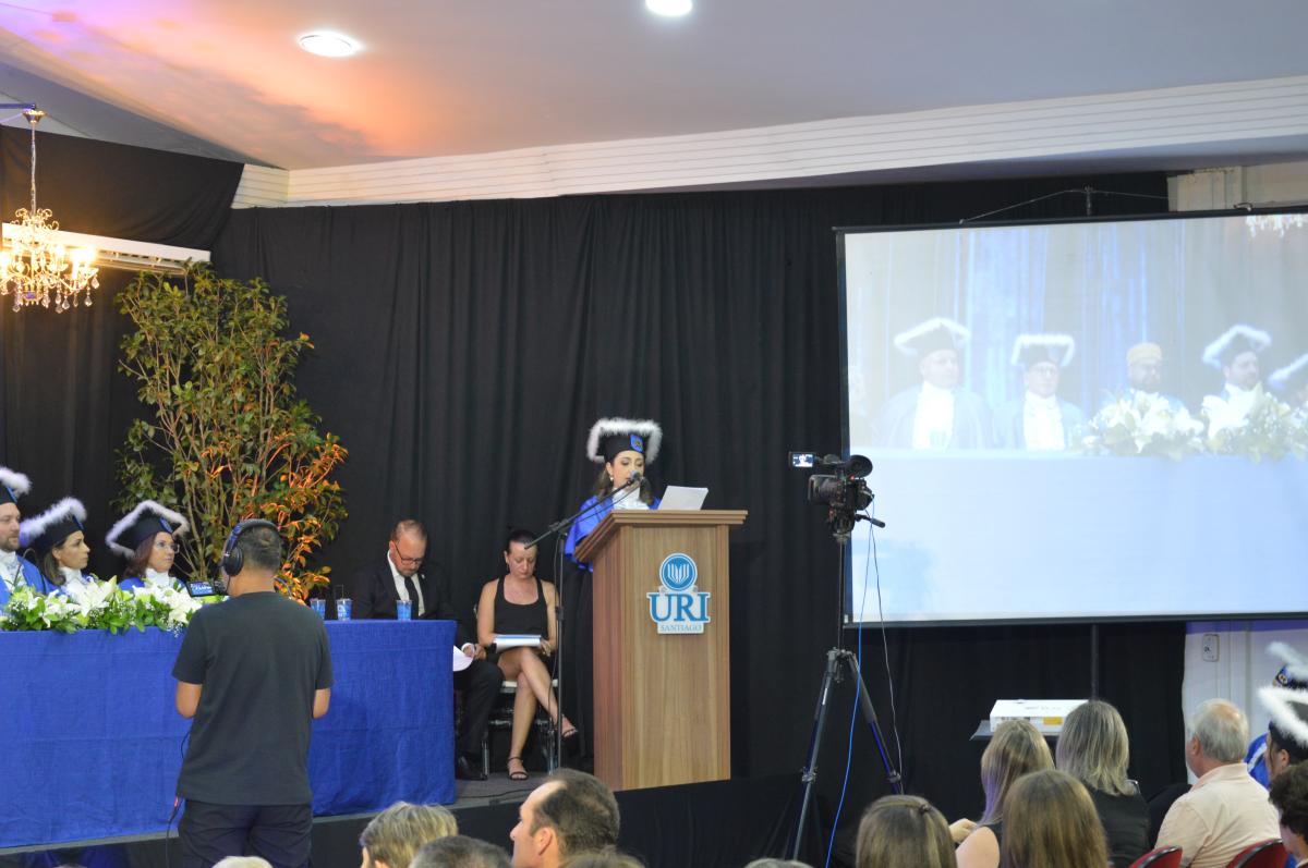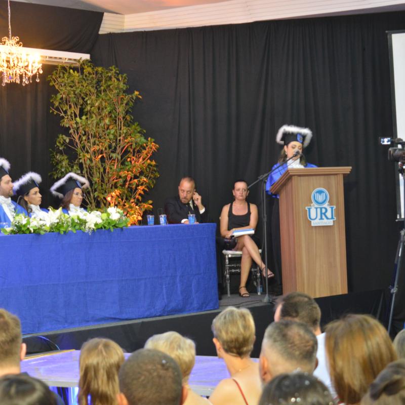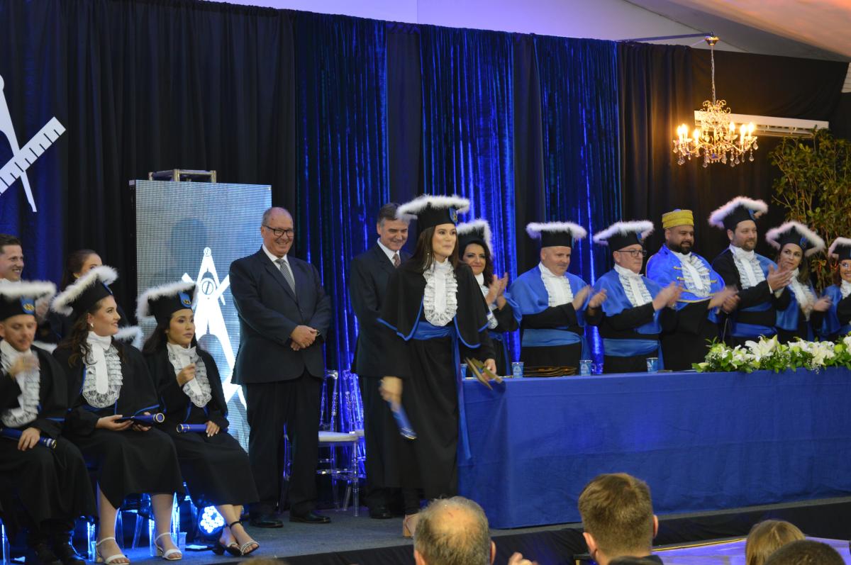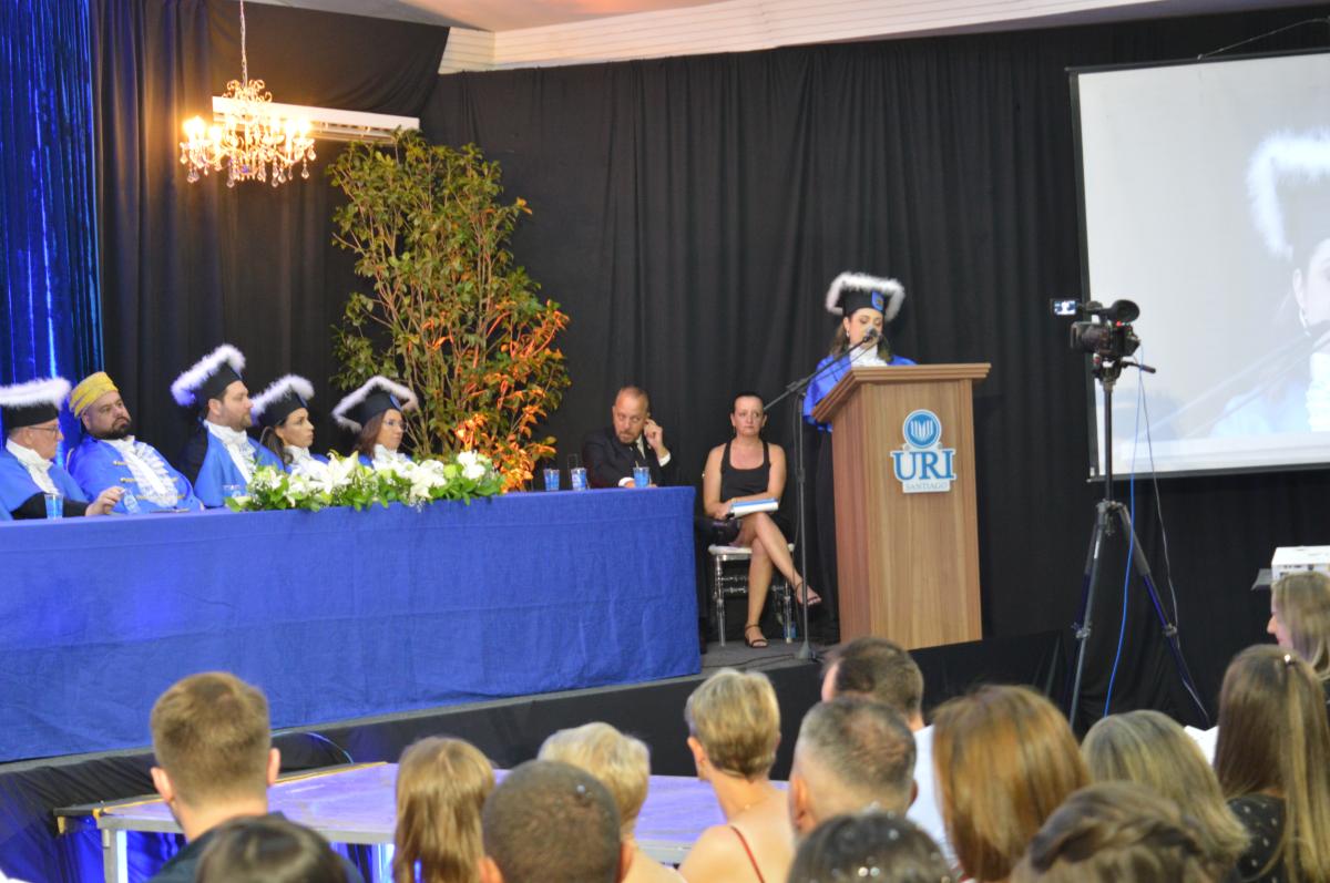 Durante a cerimônia, a formanda Stefany Gripa Malavolta foi a juramentista da Turma de Administração, enquanto que a formanda Eduarda Turchetti, foi a oradora da Turma. Já representando o Curso de Arquitetura e Urbanismo, a formanda Carine Simone da Silva Carboni, foi a juramentista da Turma e o formando Claiton Linhares Pinheiro, foi o orador da Turma.