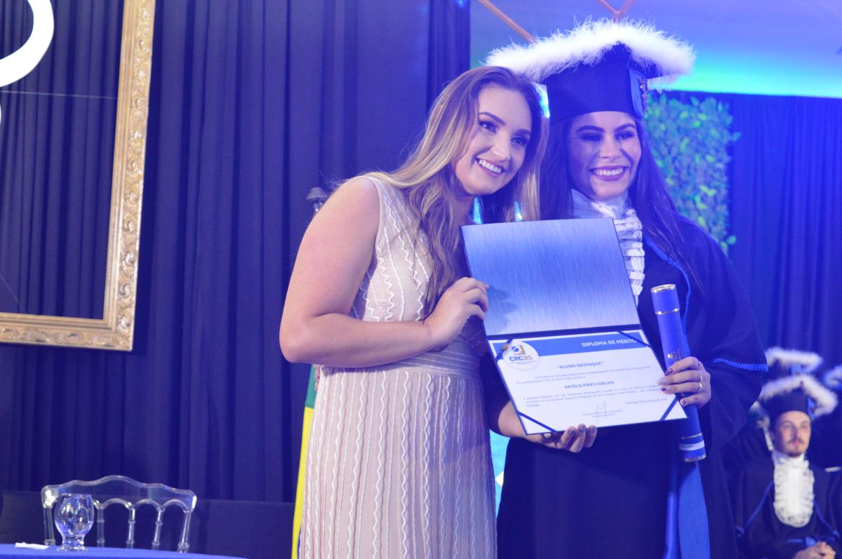 Durante o momento, o CRC/RS também realizou a entrega do prêmio de Aluna Destaque em reconhecimento de seu esforço, à acadêmica Natália Pires Coelho, entregue pela Delegada Regional do CRC, Francine Minuzzi Gorski.