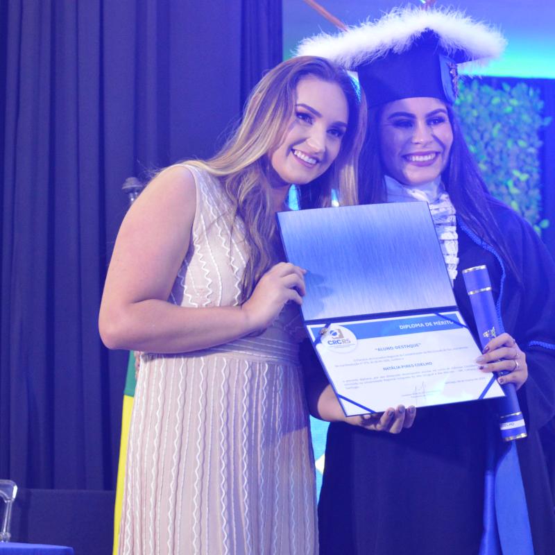 Como forma de incentivo e reconhecimento ao esforço pessoal que os formandos desenvolveram em sua trajetória, a URI Câmpus Santiago, instituiu através de portaria normativa, o certificado de mérito acadêmico para aqueles que alcançaram os melhores desempenhos. Desse modo, a Coordenador do Curso de Administração e Ciências Contábeis, Profº Fabiano Marcon realizou a entrega do certificado às formandas que alcançaram a maior média da Turma, sendo assim: