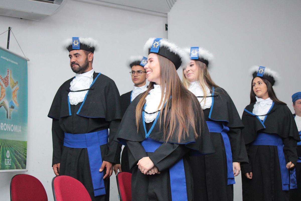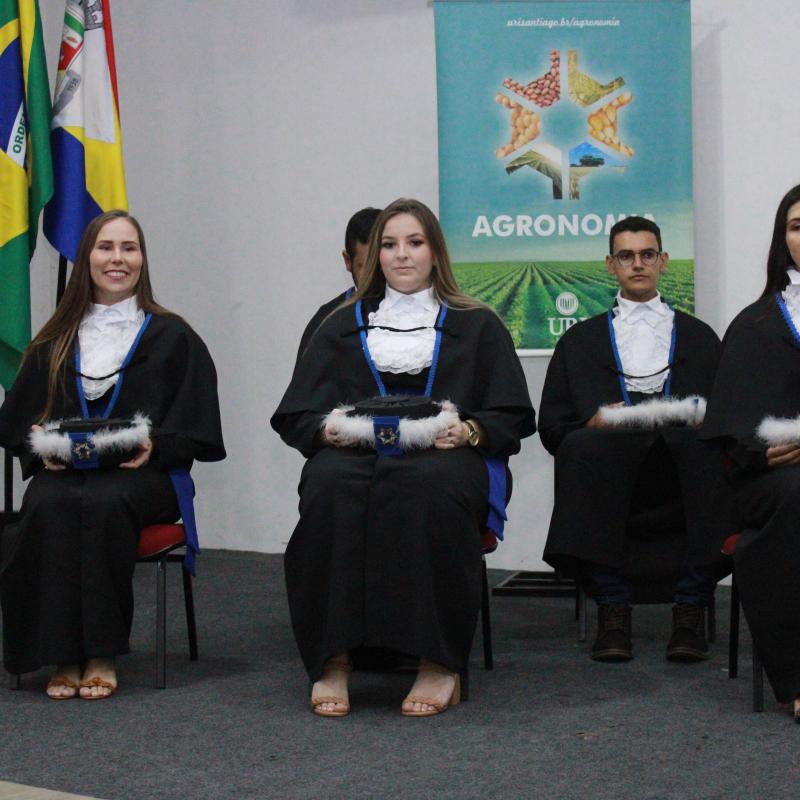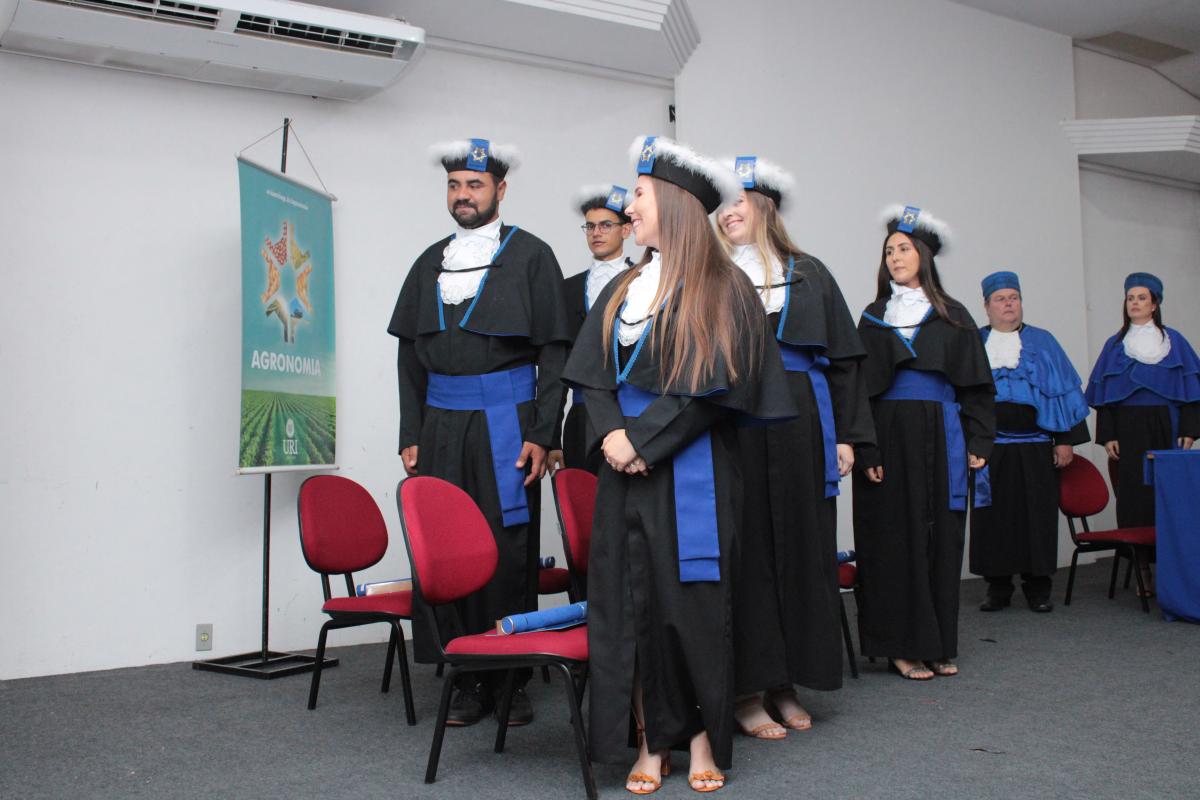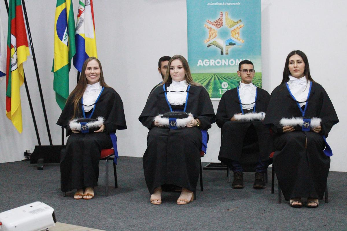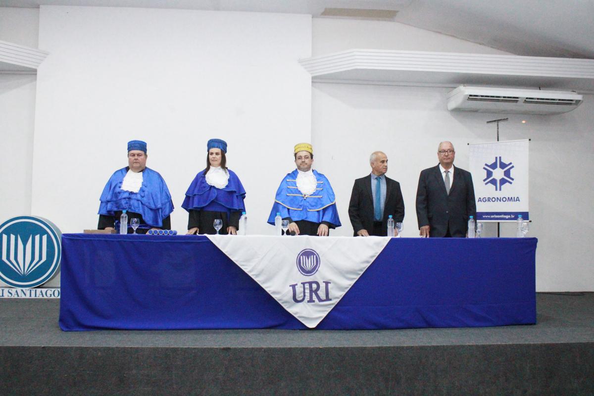 Na noite da última sexta-feira (14), o Salão de Atos da Universidade Regional Integrada do Alto Uruguai e das Missões (URI) Câmpus de Santiago foi cenário de uma cerimônia de grande importância para a Instituição: a Colação de Grau da Turma de Agronomia. A solenidade nomeou oficialmente cinco novos Engenheiros Agrônomos, celebrando o fim de uma jornada acadêmica repleta de desafios, conquistas e aprendizados, prontos para dar início às suas carreiras profissionais na área agrícola.