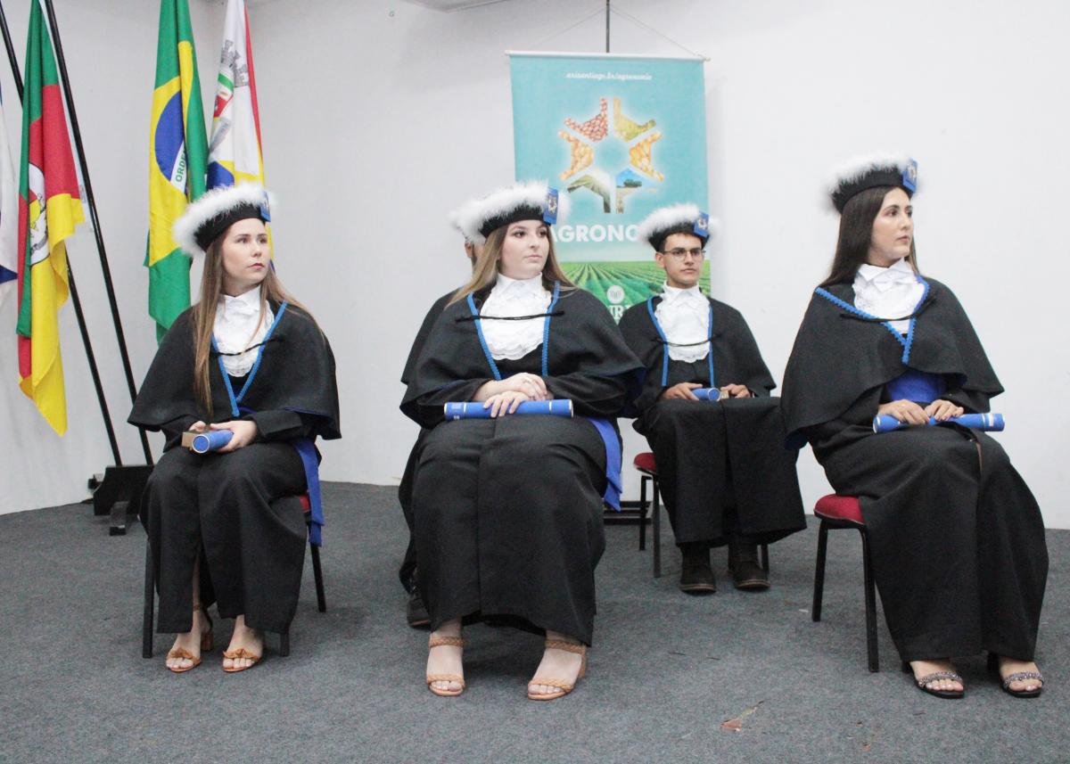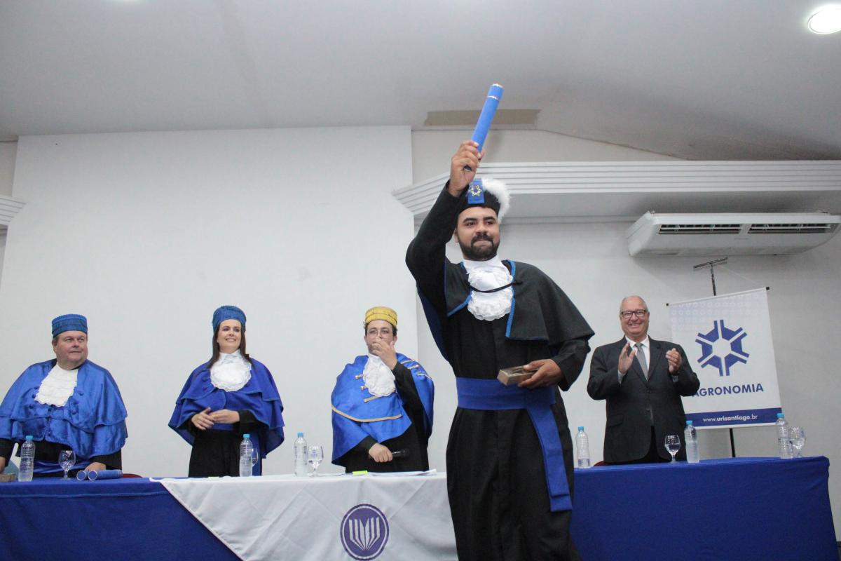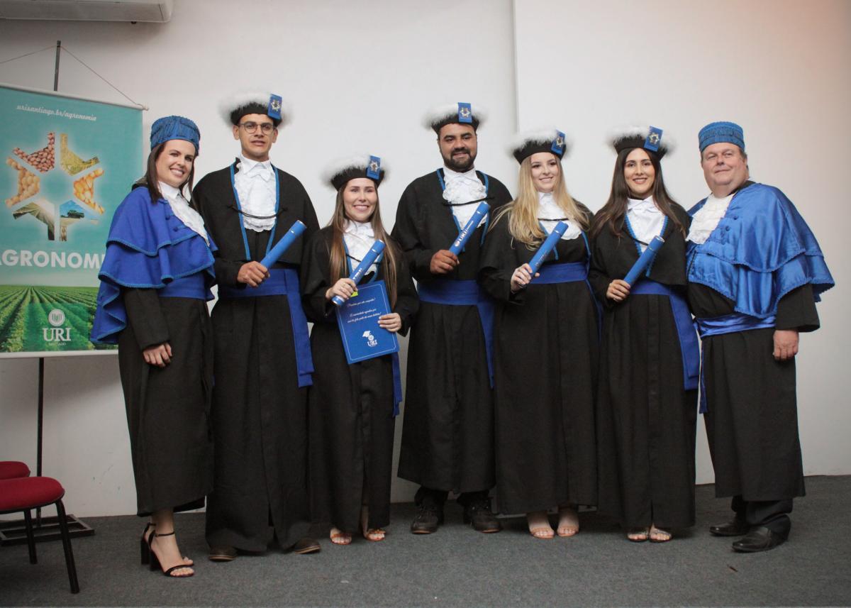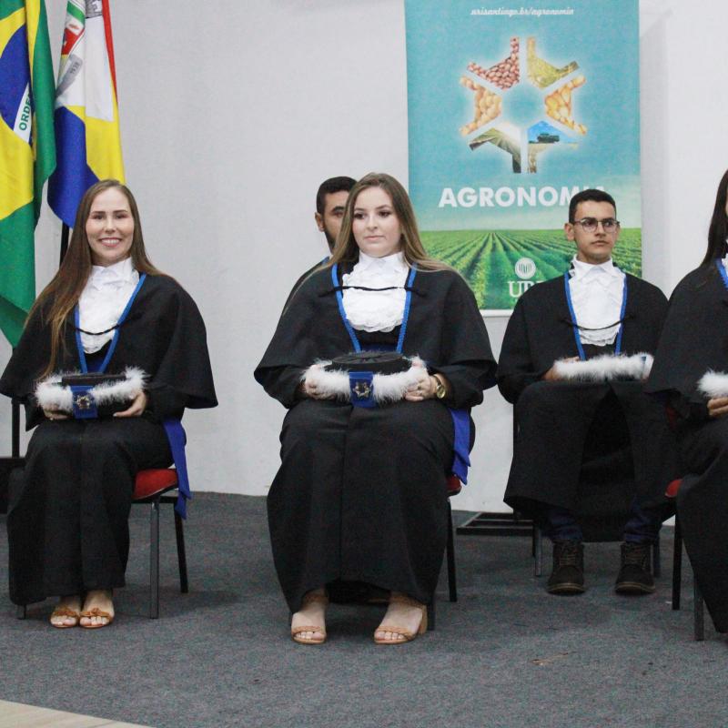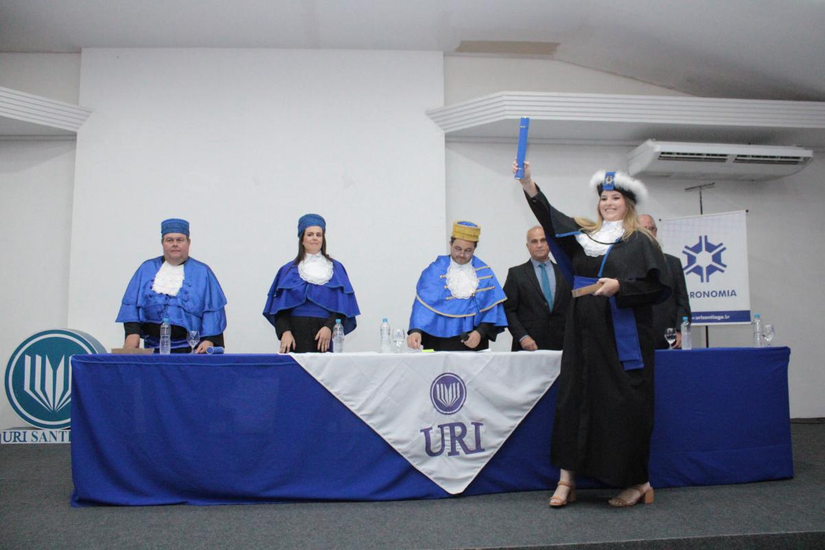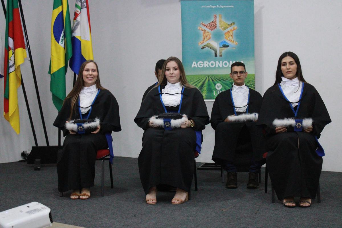 Na noite da última sexta-feira (14), o Salão de Atos da Universidade Regional Integrada do Alto Uruguai e das Missões (URI) Câmpus de Santiago foi cenário de uma cerimônia de grande importância para a Instituição: a Colação de Grau da Turma de Agronomia. A solenidade nomeou oficialmente cinco novos Engenheiros Agrônomos, celebrando o fim de uma jornada acadêmica repleta de desafios, conquistas e aprendizados, prontos para dar início às suas carreiras profissionais na área agrícola.