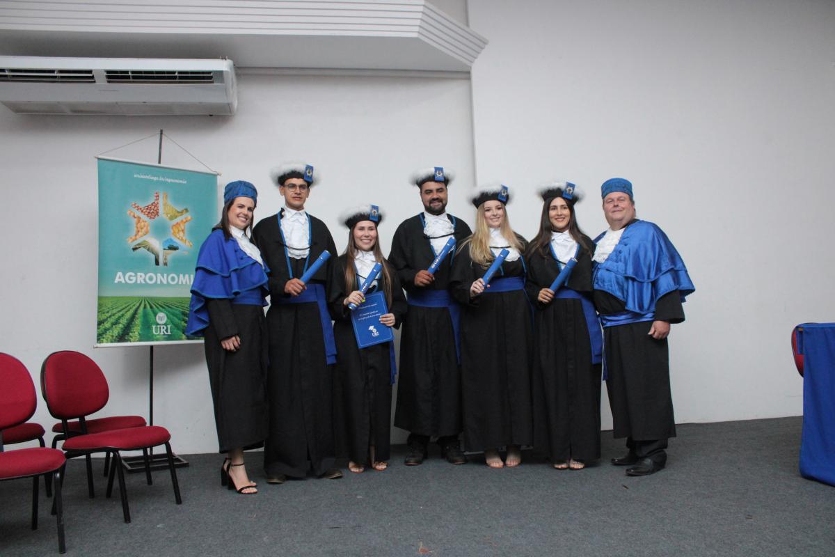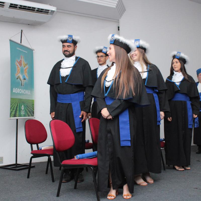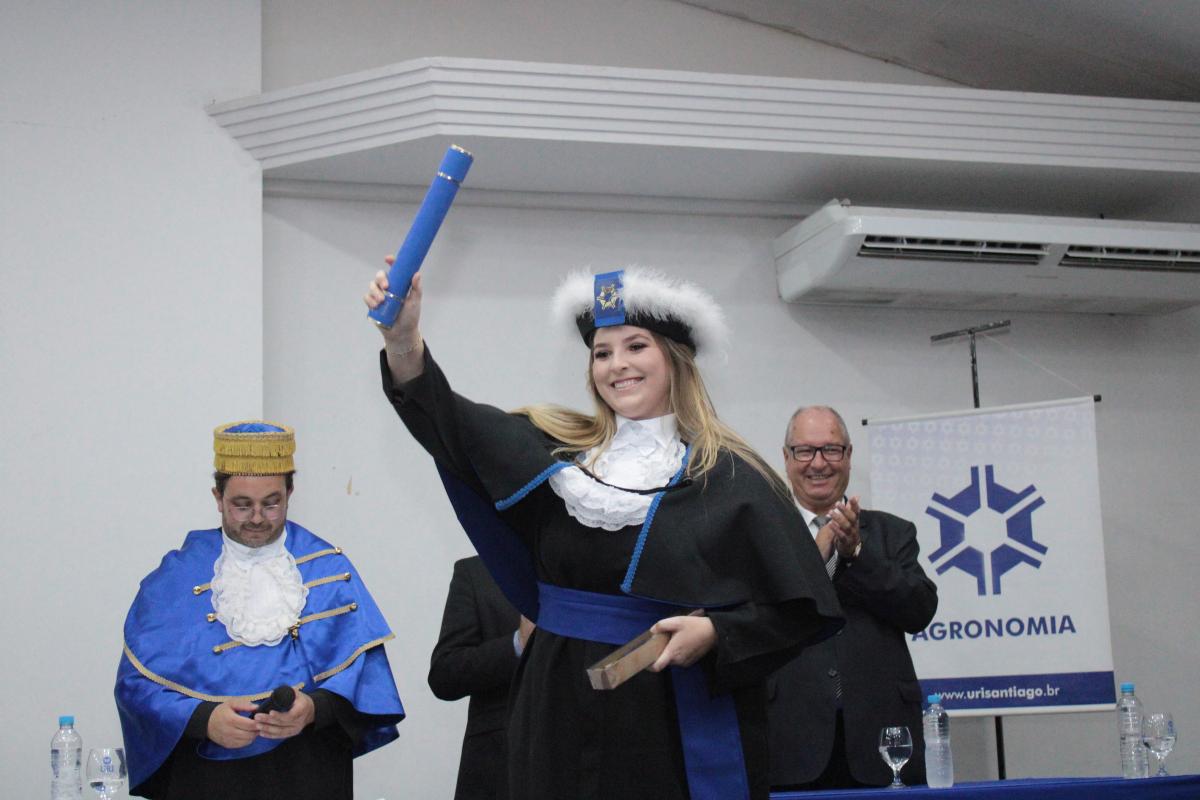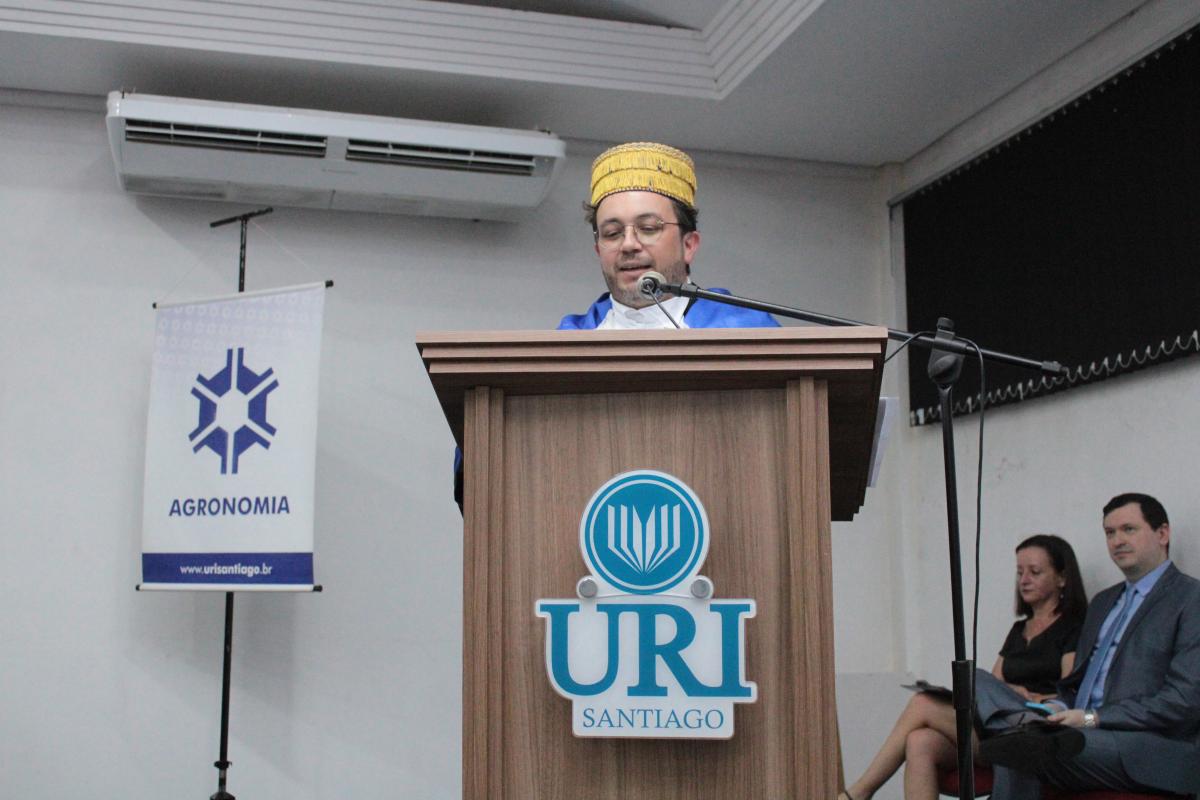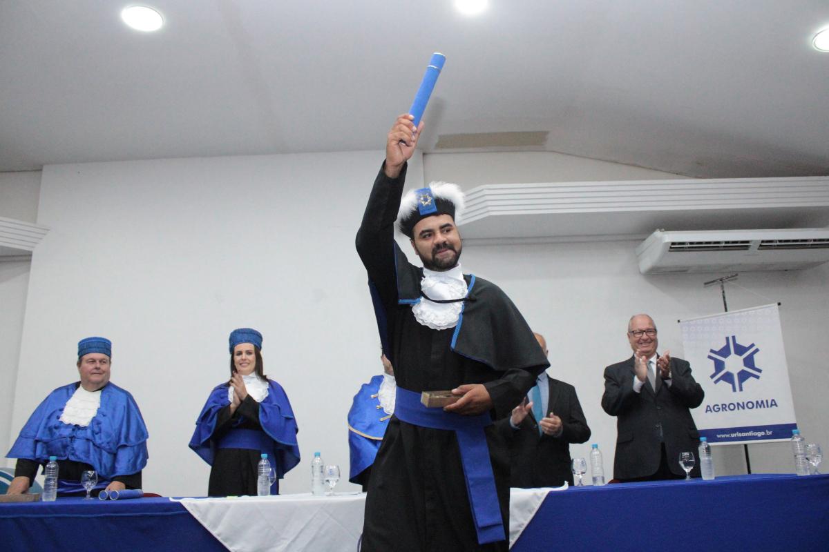 Na noite da última sexta-feira (14), o Salão de Atos da Universidade Regional Integrada do Alto Uruguai e das Missões (URI) Câmpus de Santiago foi cenário de uma cerimônia de grande importância para a Instituição: a Colação de Grau da Turma de Agronomia. A solenidade nomeou oficialmente cinco novos Engenheiros Agrônomos, celebrando o fim de uma jornada acadêmica repleta de desafios, conquistas e aprendizados, prontos para dar início às suas carreiras profissionais na área agrícola.