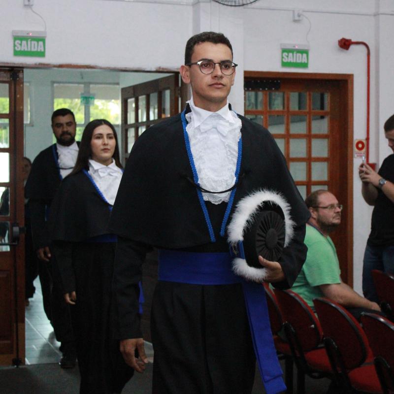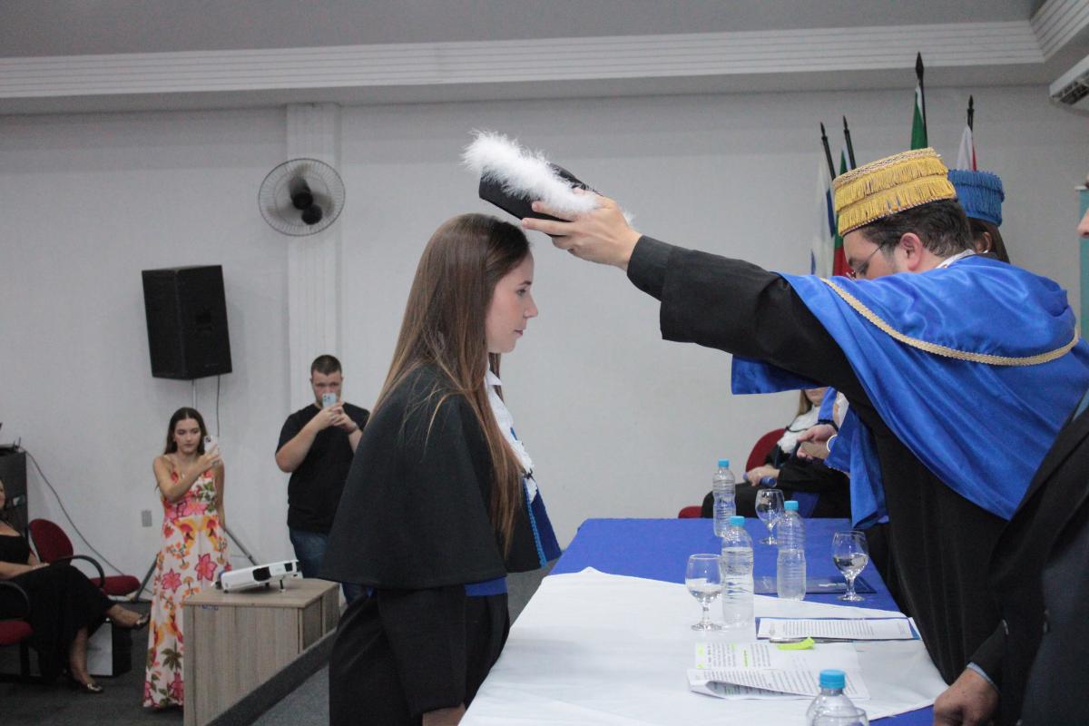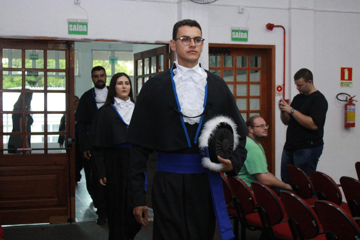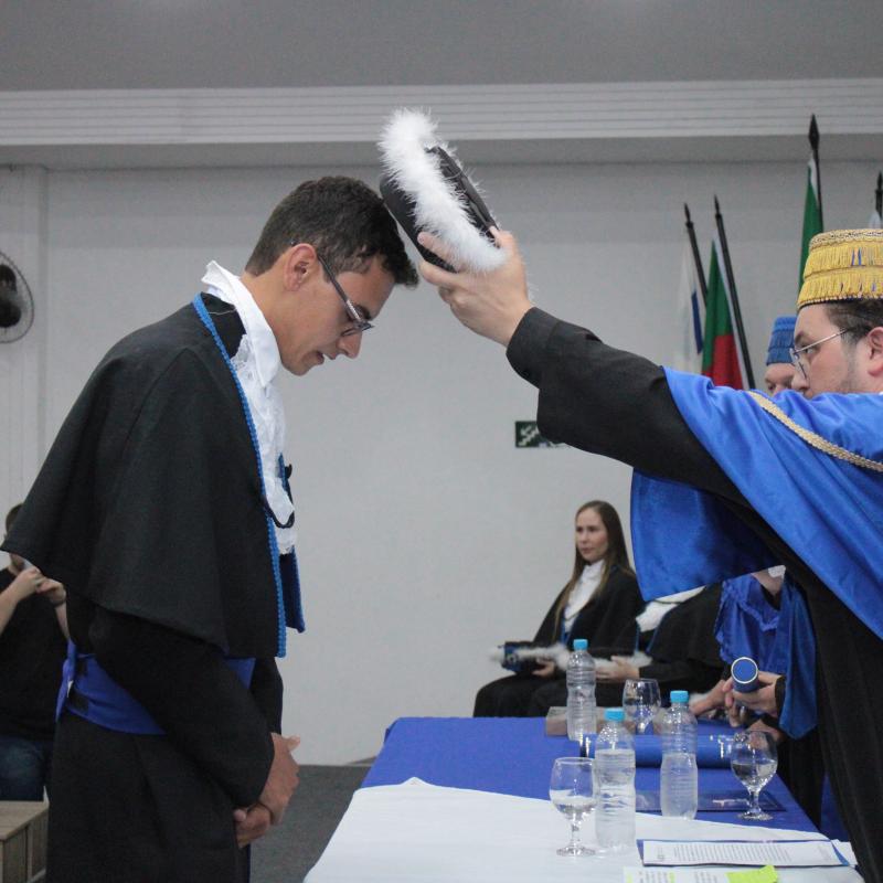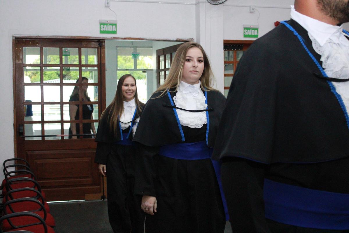 A cerimônia foi presidida pelo Diretor Acadêmico, Professor Izaque Machado Ribeiro, e contou com a presença de diversas autoridades acadêmicas e civis. A mesa de honra foi composta pela Professora Tassiane Bolzan Moraes, Paraninfa da Turma e representante do Coordenador do Curso e o Prof. Vanius Venturini Veiga, Patrono da Turma.