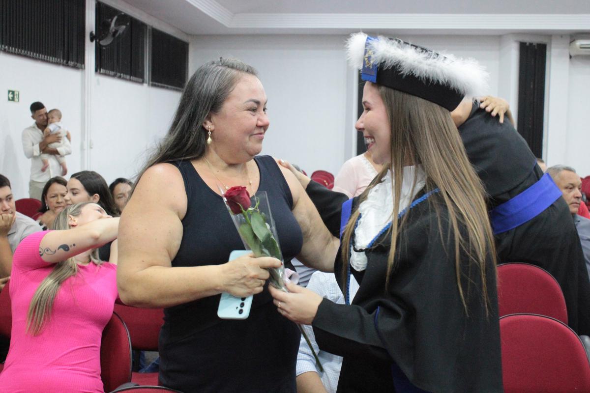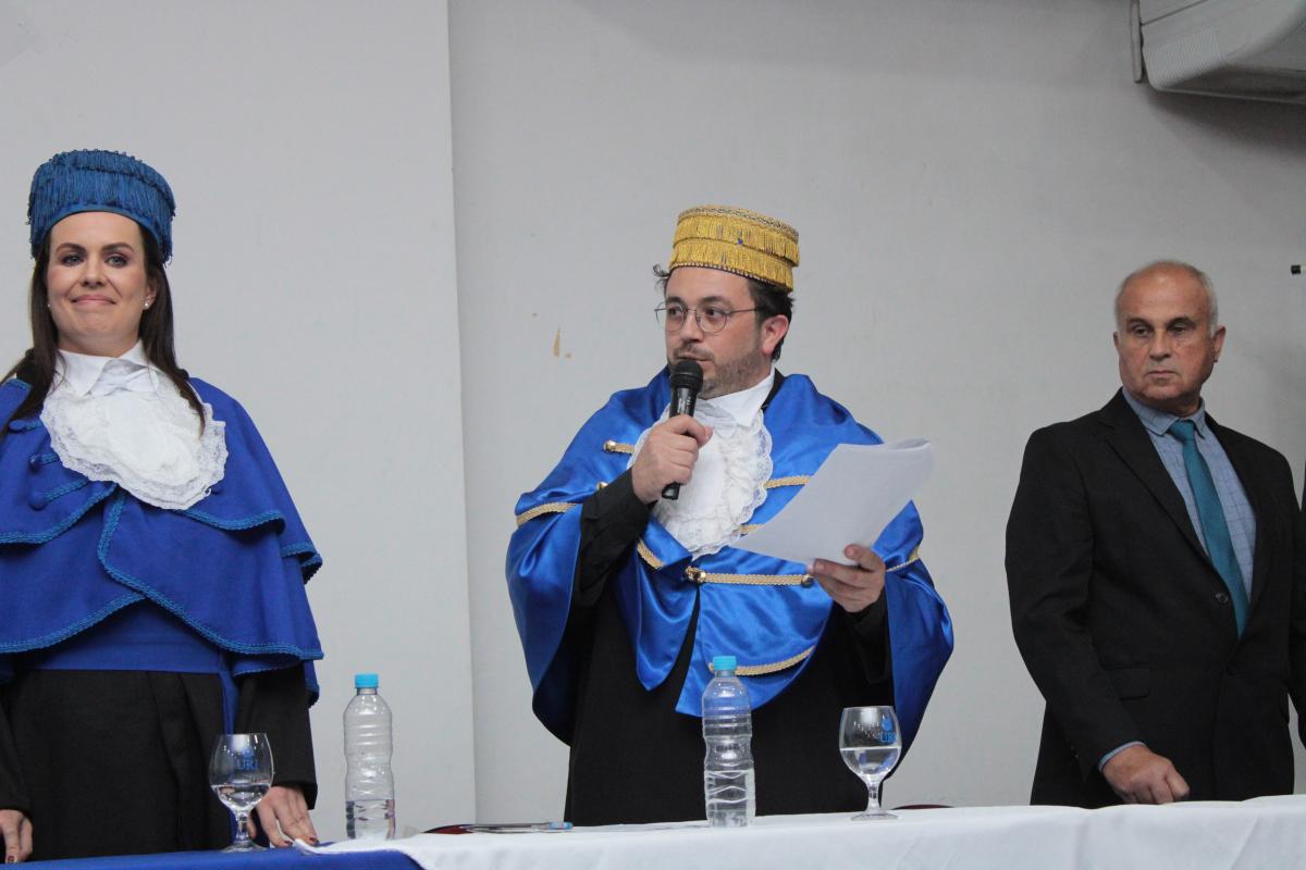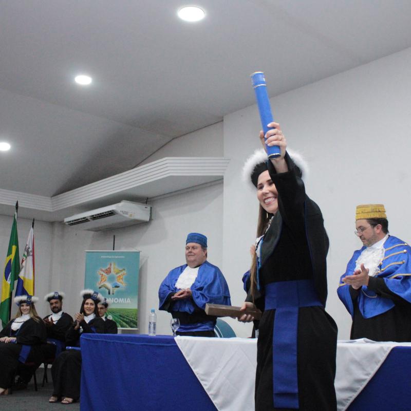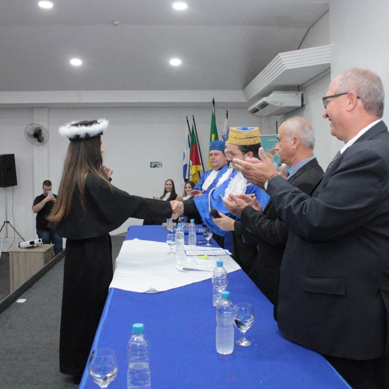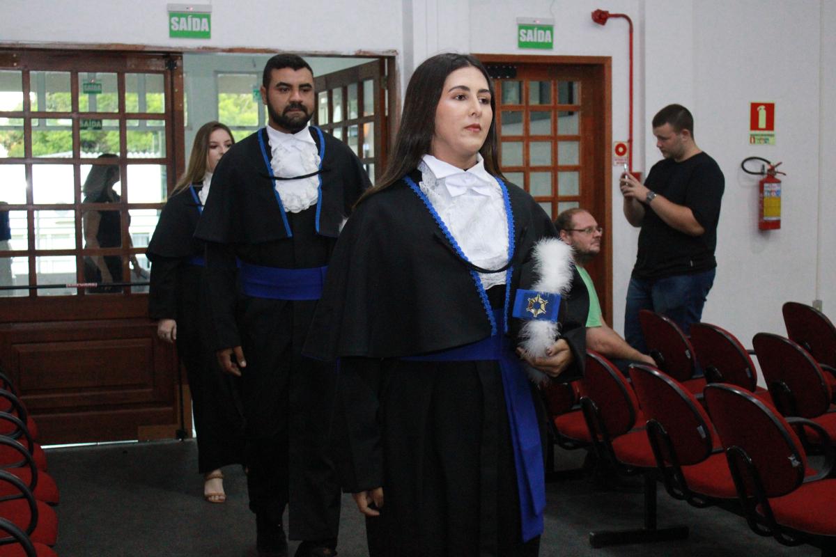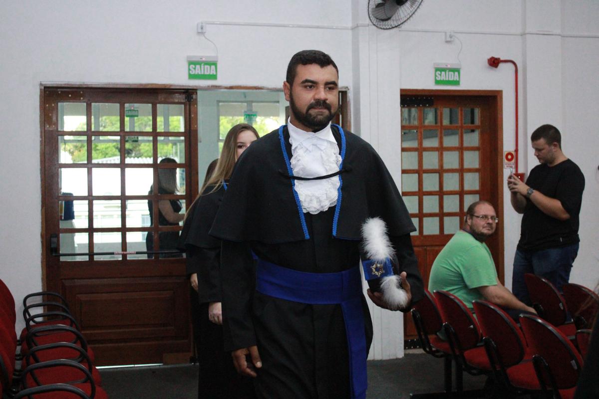 A cerimônia foi presidida pelo Diretor Acadêmico, Professor Izaque Machado Ribeiro, e contou com a presença de diversas autoridades acadêmicas e civis. A mesa de honra foi composta pela Professora Tassiane Bolzan Moraes, Paraninfa da Turma e representante do Coordenador do Curso e o Prof. Vanius Venturini Veiga, Patrono da Turma.
