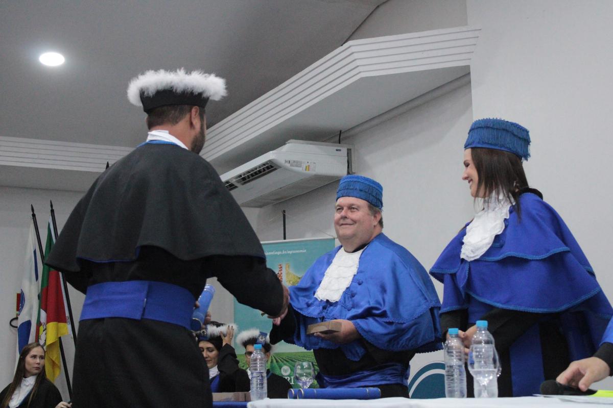 A Turma de Agronomia tinha ainda como homenageado o docente que fez parte da caminhada acadêmica, Prof. Olívio Bochi Brum.
