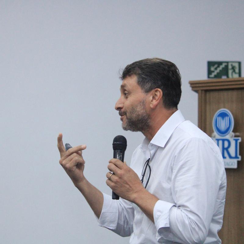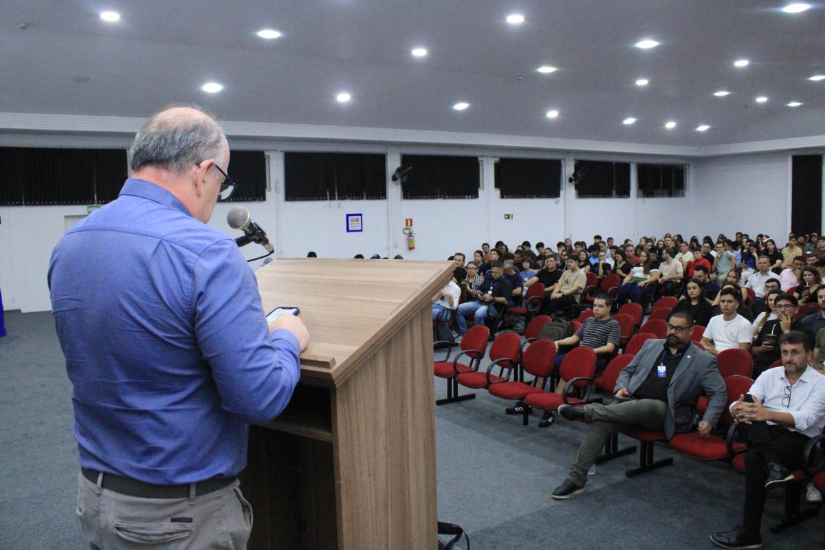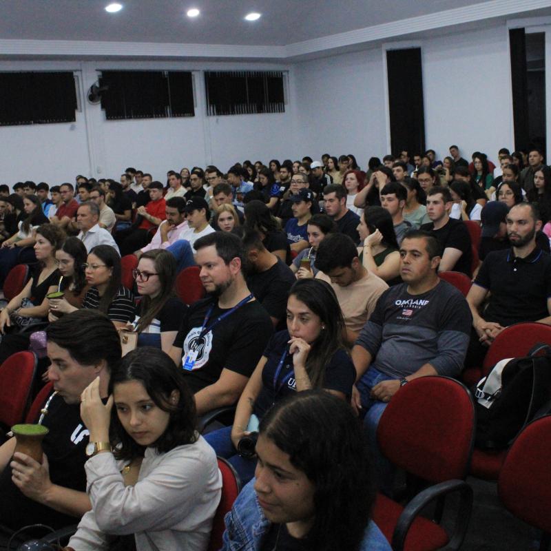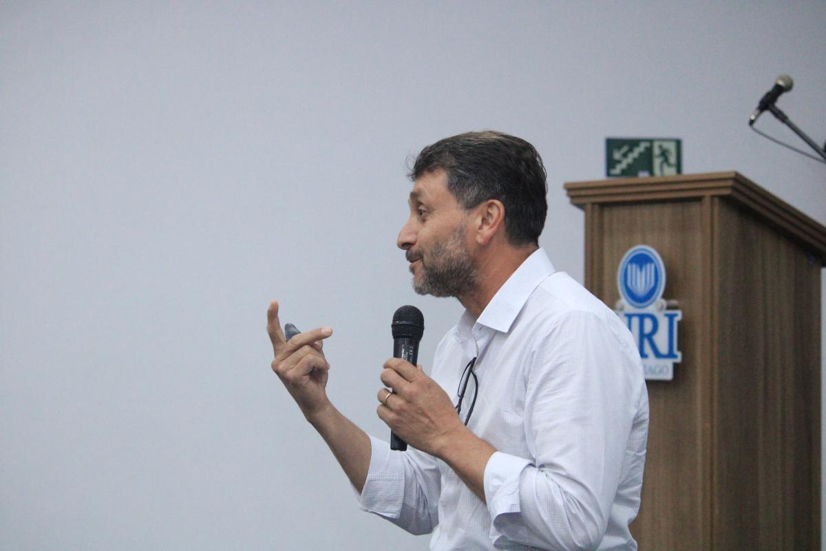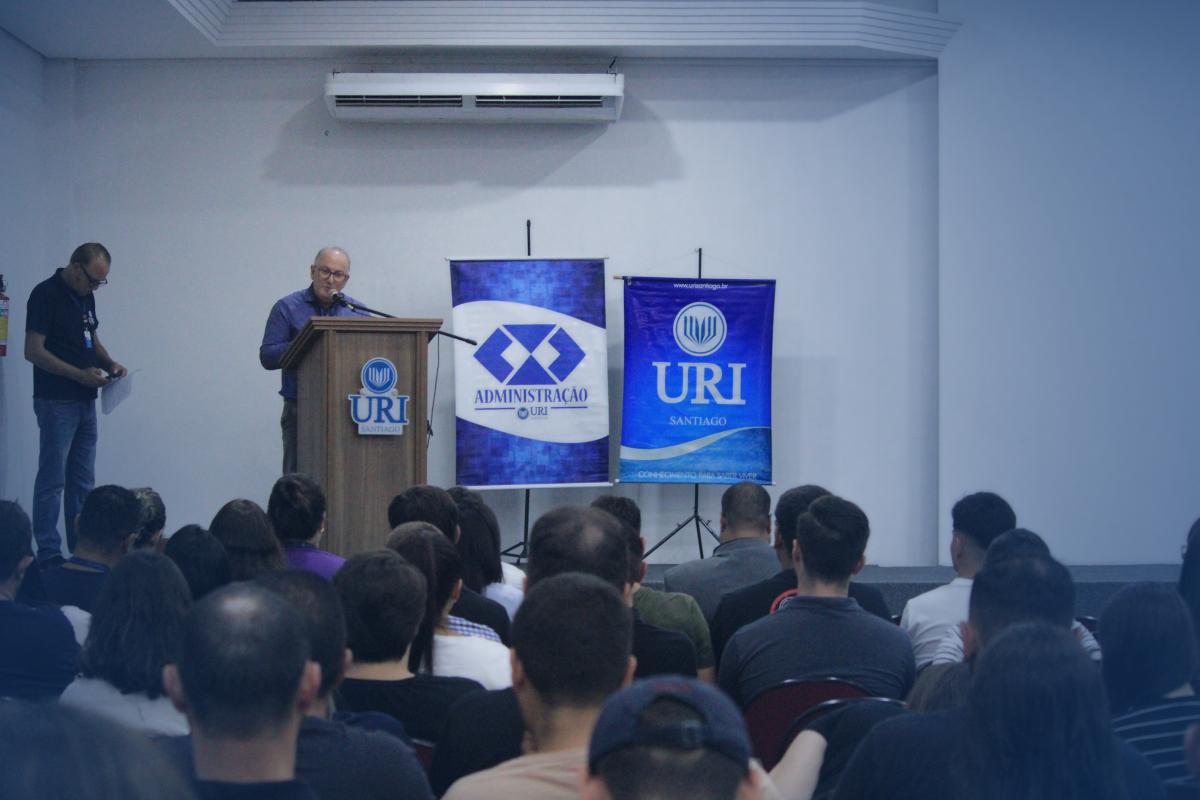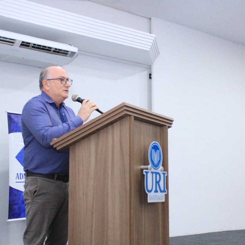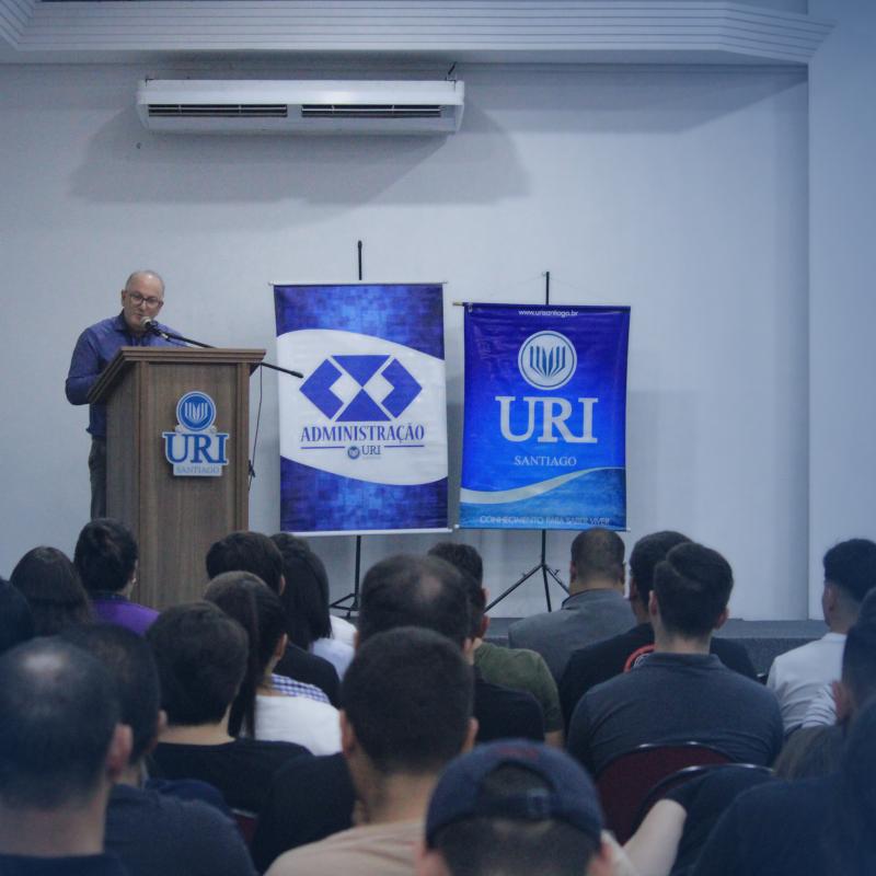 Além de compartilhar sua experiência profissional, o encontro também teve um significado especial para o convidado, que retornou à universidade onde iniciou sua trajetória acadêmica. Leandro Gindri integrou a primeira turma do curso de Administração da URI Santiago, formada em 1999, e posteriormente também realizou duas pós-graduações na instituição.