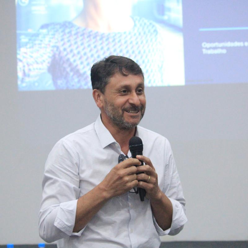 Durante a palestra, o convidado apresentou um panorama das mudanças já em curso nas organizações, destacando como a Inteligência Artificial vem se integrando ao cotidiano das empresas e da sociedade. Entre os pontos abordados, ressaltou a importância de compreender a IA como uma ferramenta de apoio às atividades humanas.