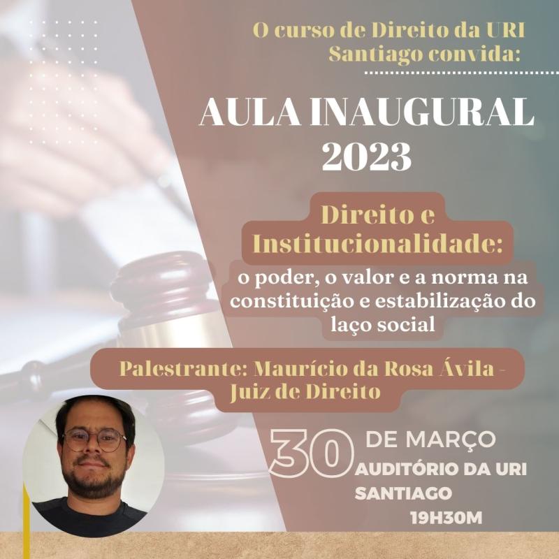 No dia 30 de março, o curso de Direito da Universidade Regional Integrada do Alto Uruguai e das Missões – URI Santiago, que em 2023 chega aos 25 anos, realizará a sua aula inaugural.