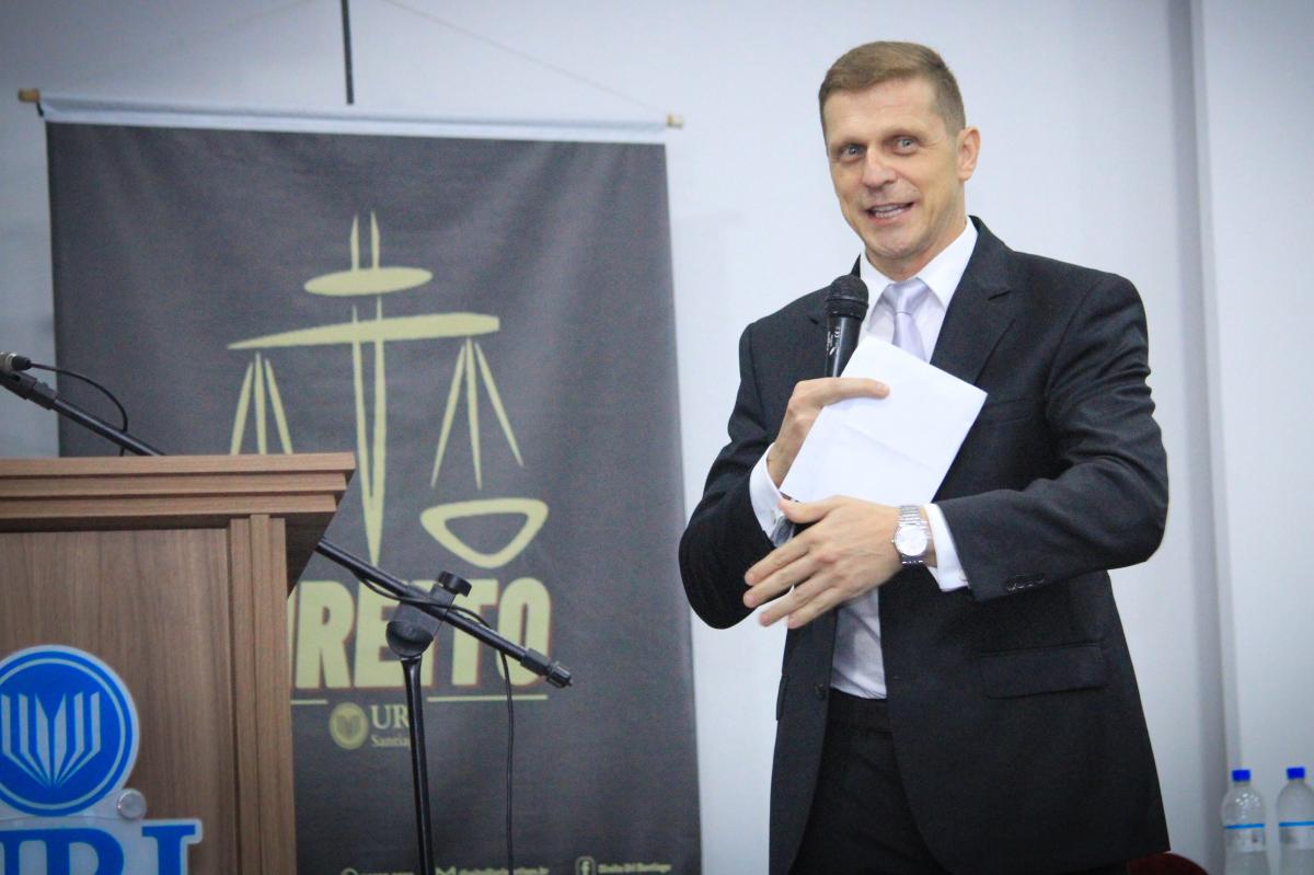 A conferência foi ministrada pelo jurista Carlos Eduardo Reverbel, que é Doutor em Direito pela Universidade de São Paulo (USP), Doutor e Mestre em Direito do Estado pela Universidade Federal do Rio Grande do Sul (UFRGS), além de Especialista na mesma área.