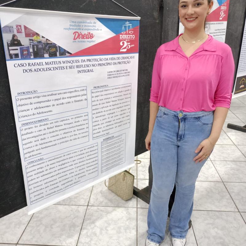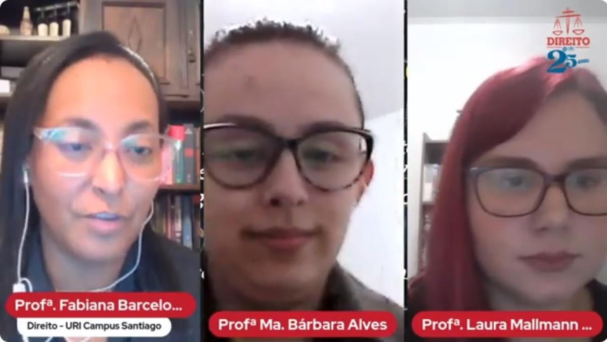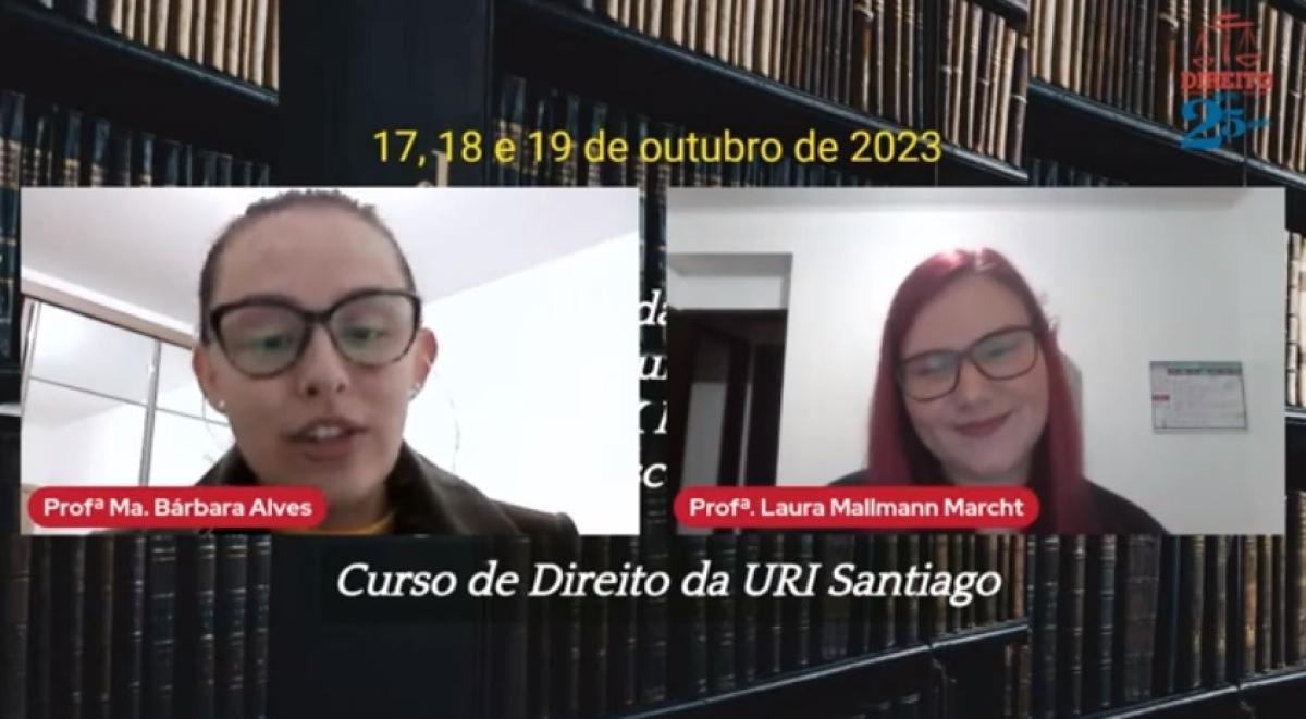 A primeira palestra foi mediada pela Profª Ma. Bárbara Alves Saikoski que recebeu a Advogada, Professora Universitária, Bacharela e Mestra em Direito pela Universidade Regional do Noroeste do Estado do Rio Grande do Sul (UNIJUÍ) e Doutoranda em Direito, pela URI Santo Ângelo, Laura Mallmann Marcht. A convidada tratou da temática “As potencialidades do projeto da Constituinte da Terra de Luigi Ferrajoli” e pode compartilhar suas experiências internacionais pela Universidade do Porto, em Portugal, nas Faculdades de Direito e Criminologia.