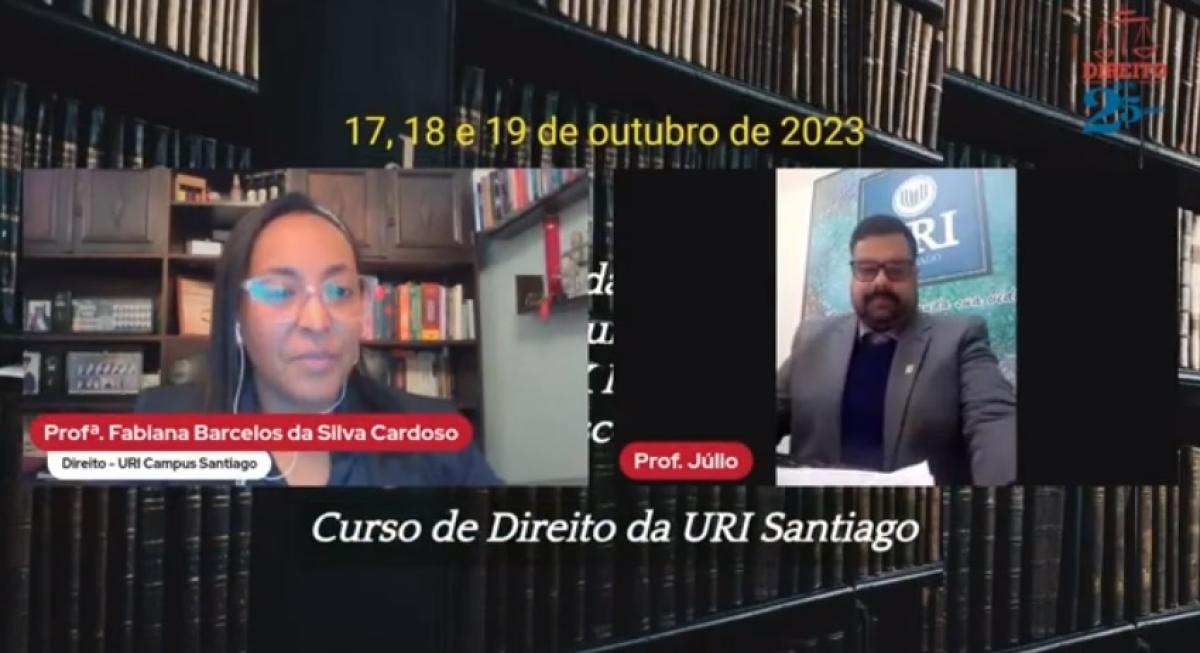 Durante as datas de 17, 18 e 19 de outubro, o Curso de Direito, da Universidade Regional Integrada do Alto Uruguai e das Missões (URI) Câmpus de Santiago, realizou a XIV Semana Acadêmica, acompanhado do XIV Ciclo de Egressos e da XX Mostra Docente e Discente. O evento que teve sua primeira noite de maneira online e as seguintes, no Salão de Atos da Universidade, reuniu acadêmicos e convidados externos.