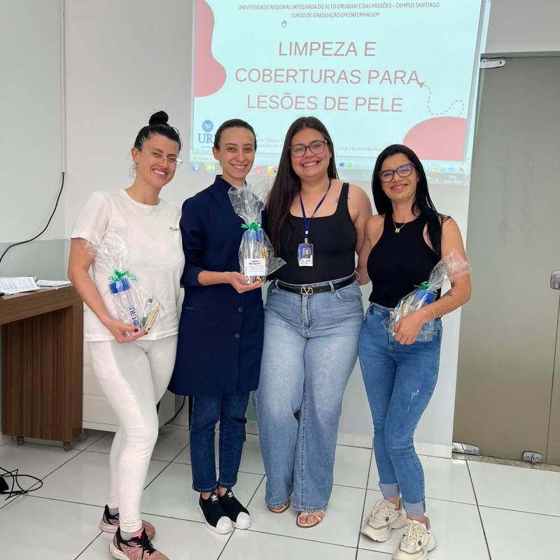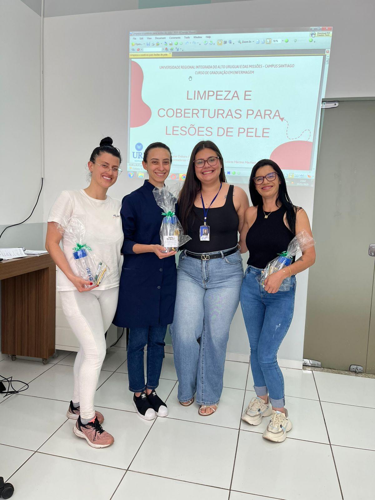Nesta quinta-feira (13), ocorreu o encerramento de mais uma turma do projeto de Extensão “Programa Extensionista de Formação Complementar em Enfermagem Acerca de Lesões de Pele”, promovido pelo Curso de Enfermagem da Universidade Regional Integrada do Alto Uruguai e das Missões (URI) Câmpus de Santiago. A iniciativa foi conduzida pela acadêmica bolsista Débora Frigi Nunes, sob orientação das Professoras Camila Bernardi e Letícia Machado.