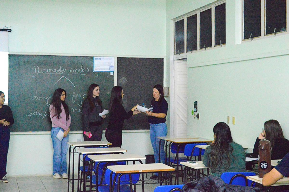 Em alusão ao Dia Mundial da Voz, celebrado em 16 de abril, acadêmicos do Curso de Fonoaudiologia da Universidade Regional Integrada do Alto Uruguai e das Missões (URI) Câmpus Santiago realizaram uma ação de conscientização voltada aos docentes da Instituição, destacando a importância dos cuidados com a saúde vocal no cotidiano profissional.
