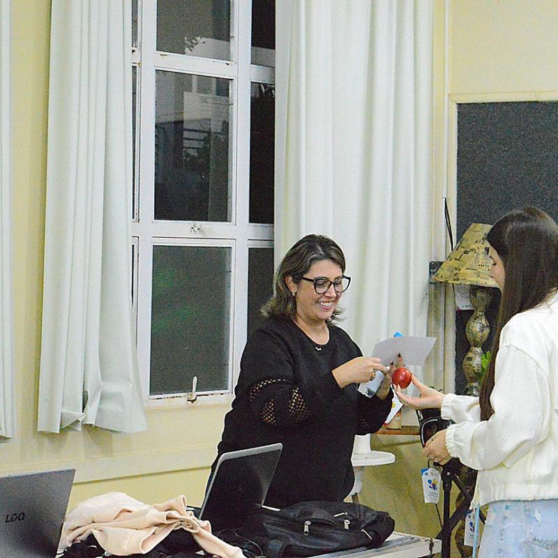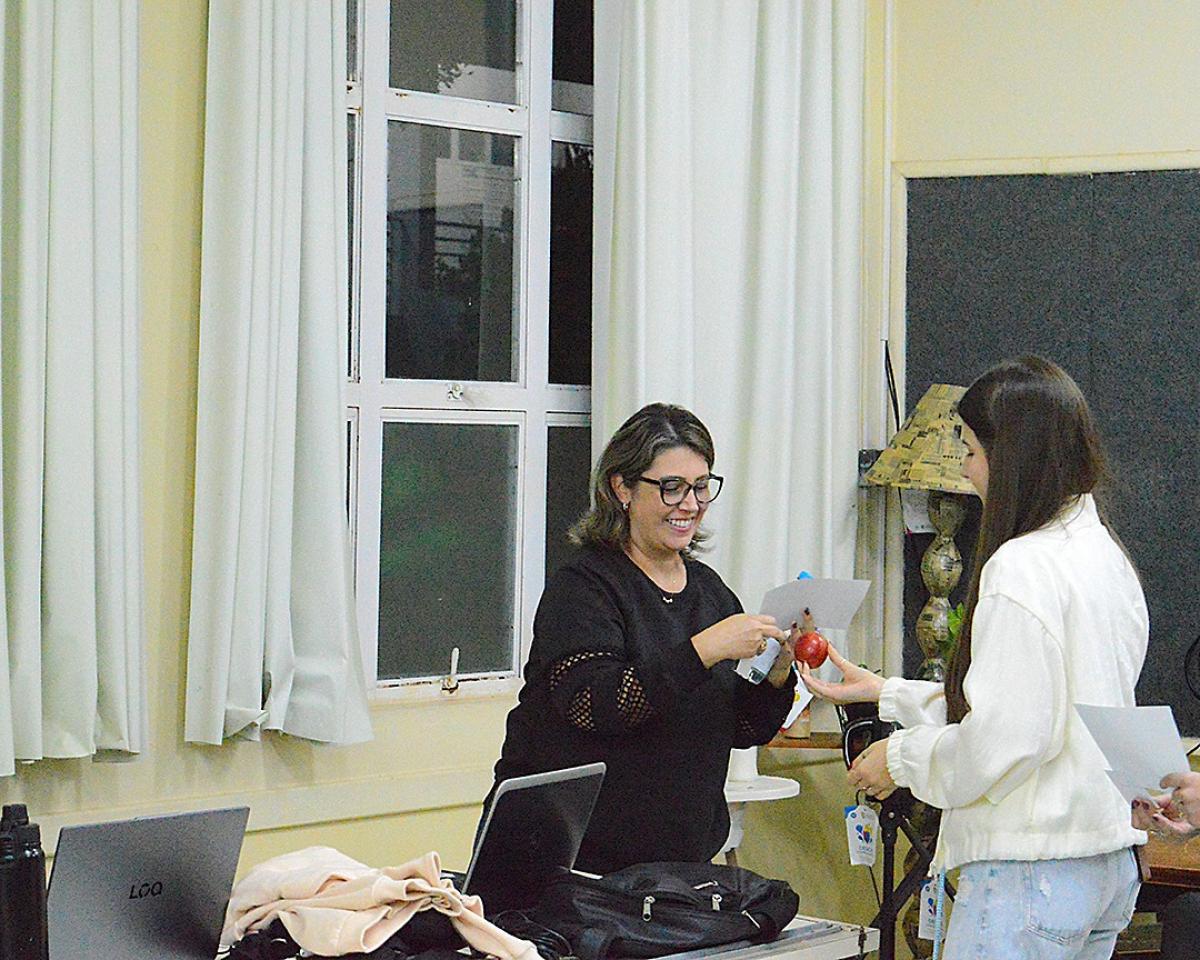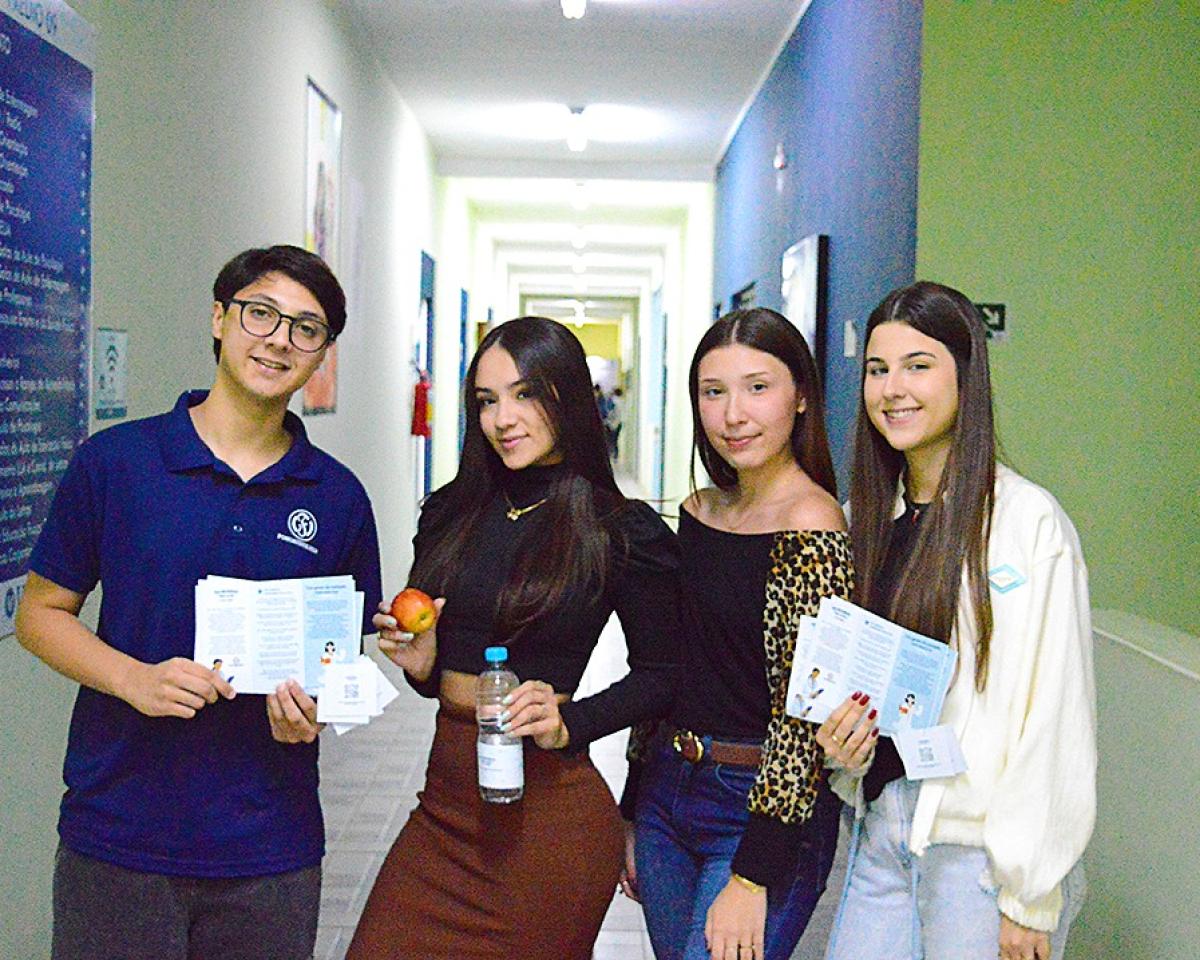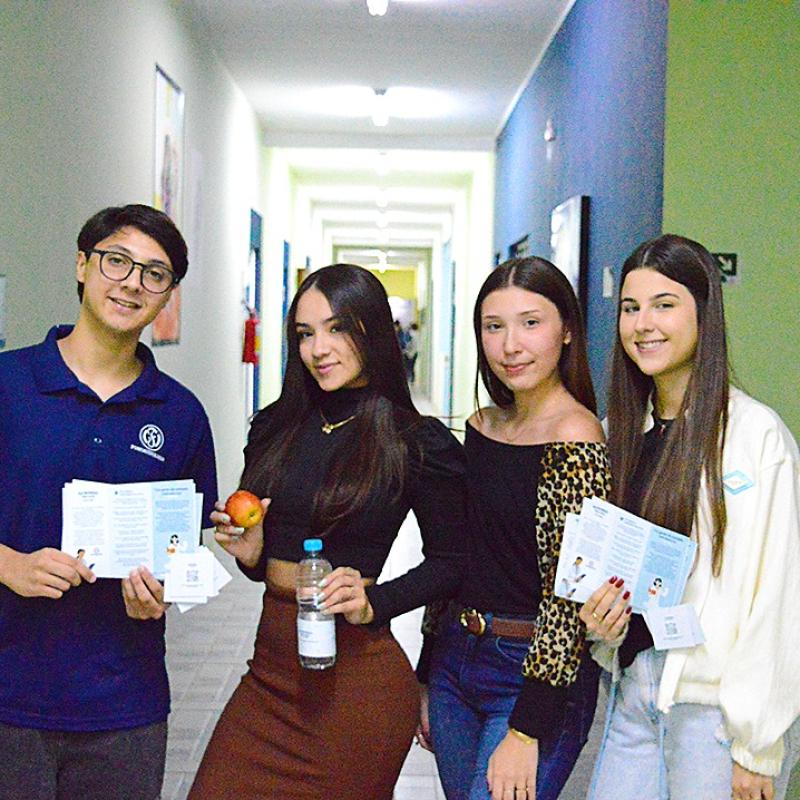 Durante a ação, os acadêmicos percorreram salas de aula e setores da instituição, realizando a entrega simbólica de uma maçã e uma garrafa de água aos docentes, acompanhadas de materiais informativos sobre cuidados vocais.