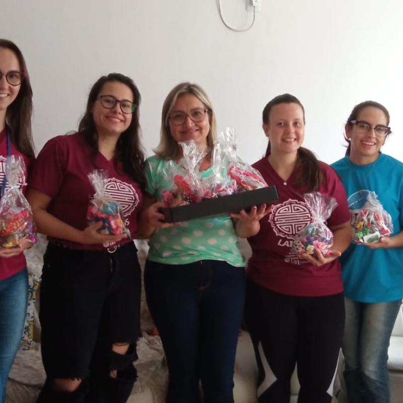 No dia 5 de abril, o curso realizou ação solidária de Páscoa no Abrigo Institucional Acolher, do município de Santiago. A ação foi organizada pelas Ligas Acadêmicas Interdisciplinar de Saúde e Meio Ambiente (LIASM) e de Gerontologia (LAIGUS), ambas ligadas ao curso de Enfermagem da URI Santiago, contando com a entrega de doces para as crianças. Estavam presentes a professora Bárbara Belmonte Bedin, acompanhada das acadêmicas Larissa Meyne, Ana Cristina Soares Cavalheiro, Jaíne Bertazzo da Silva e Luana Casarotto de Borba.