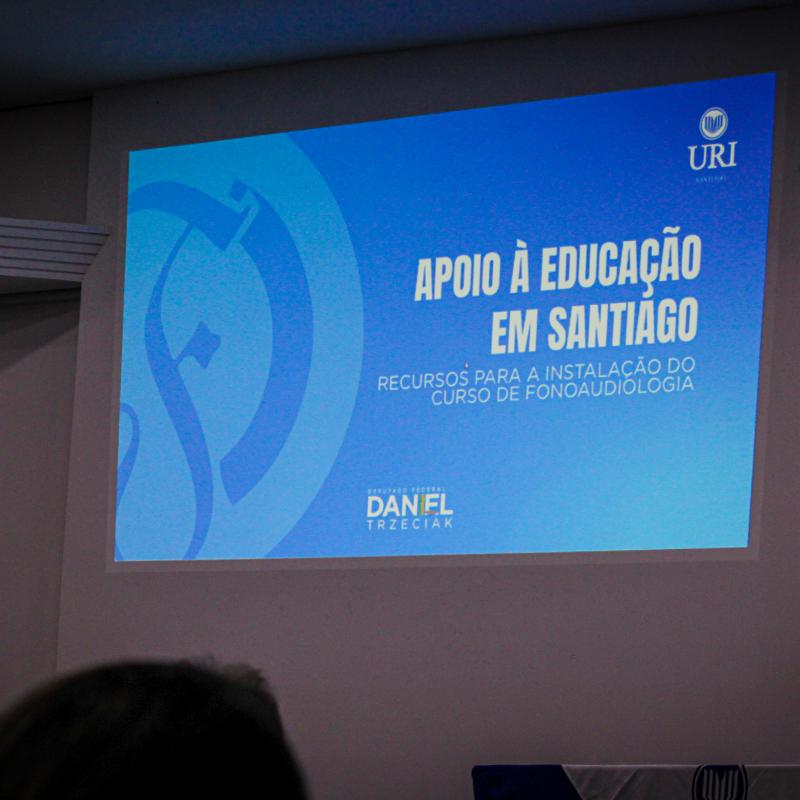 O Deputado Federal Daniel Trzeciak esteve na Universidade Regional Integrada do Alto Uruguai e das Missões (URI) Câmpus de Santiago, na noite de terça-feira (28), para ministrar a palestra “Cuidando da educação e das pessoas”, no Salão de Atos da Universidade. O evento reuniu professores, acadêmicos, autoridades e comunidade regional para um momento de diálogo sobre o papel transformador da educação e o valor humano que sustenta o ato de ensinar.
