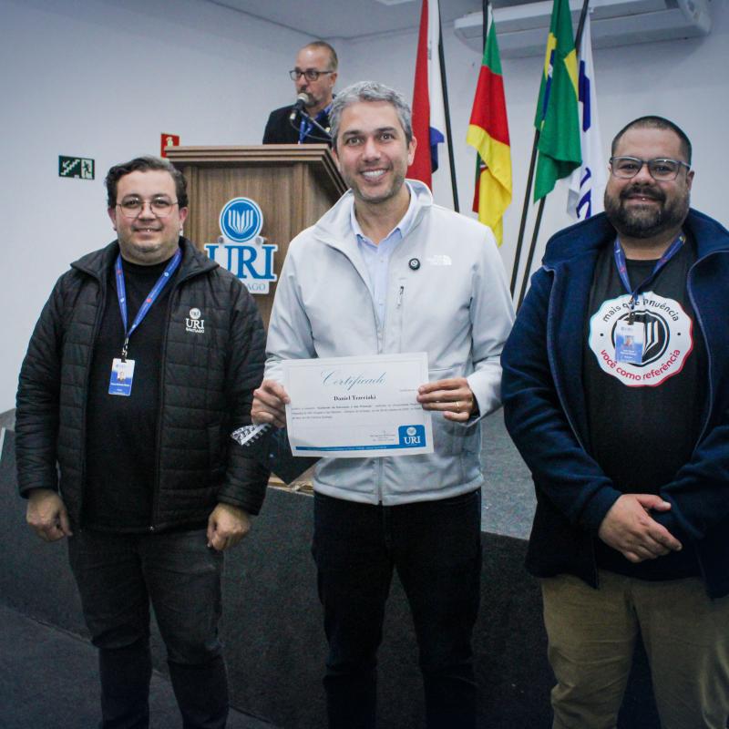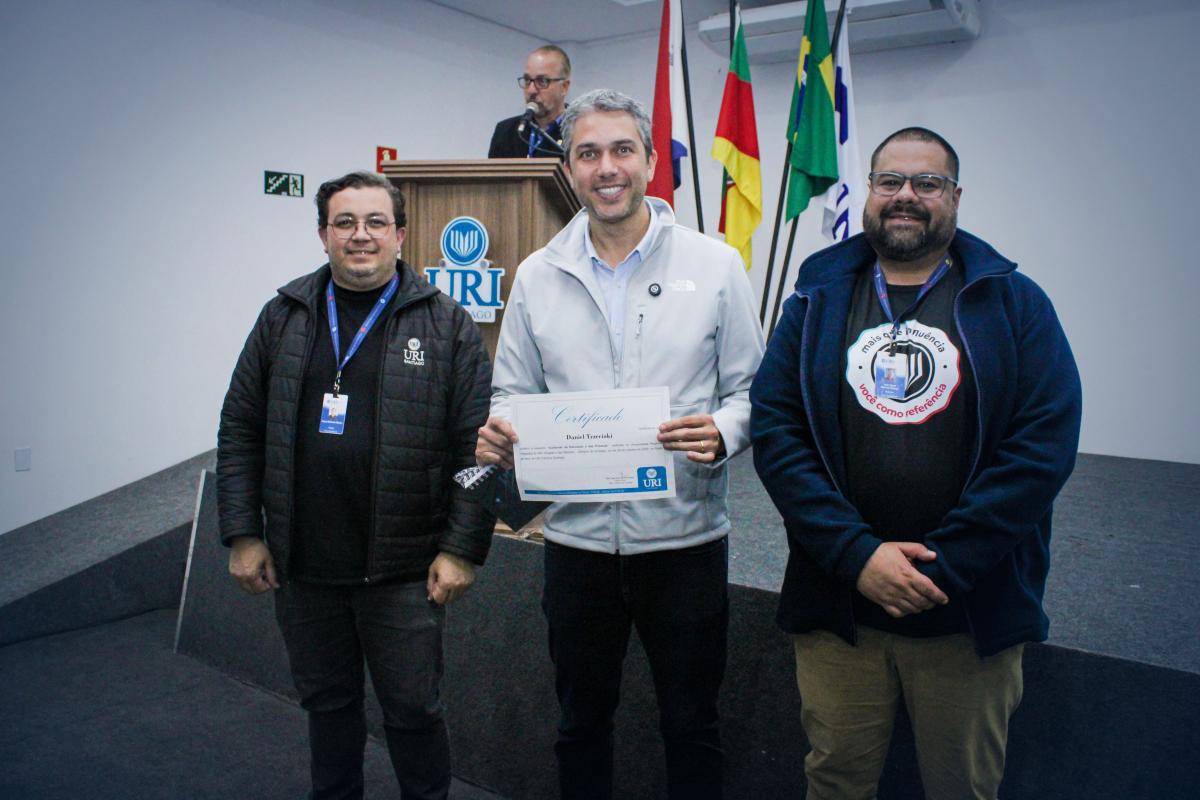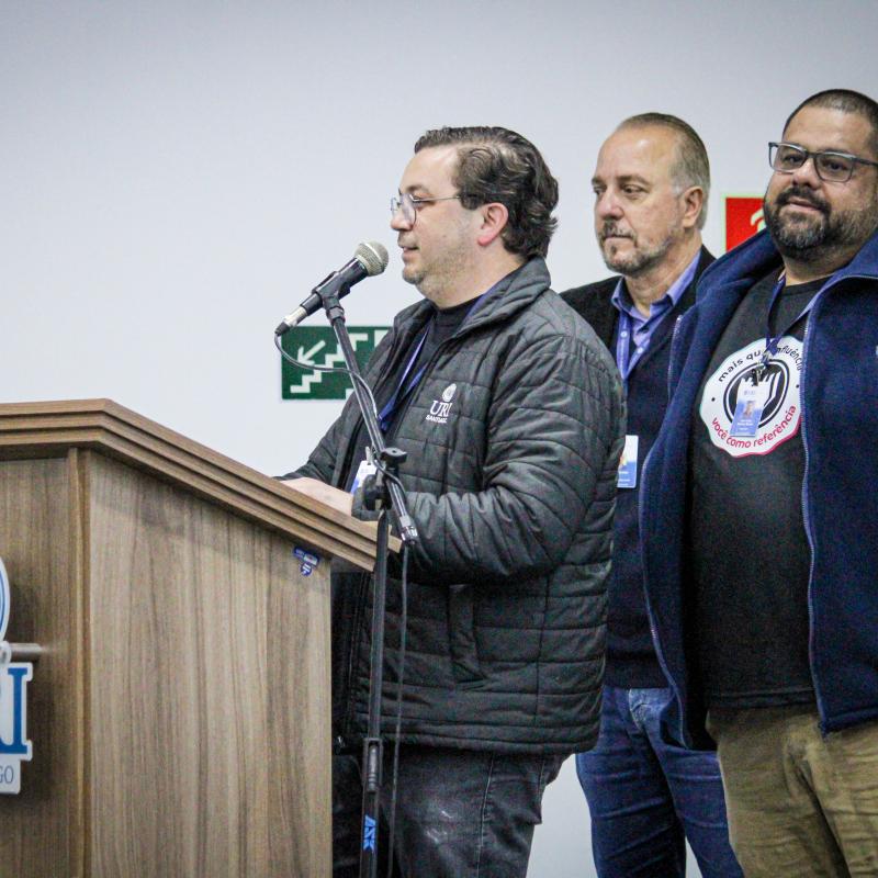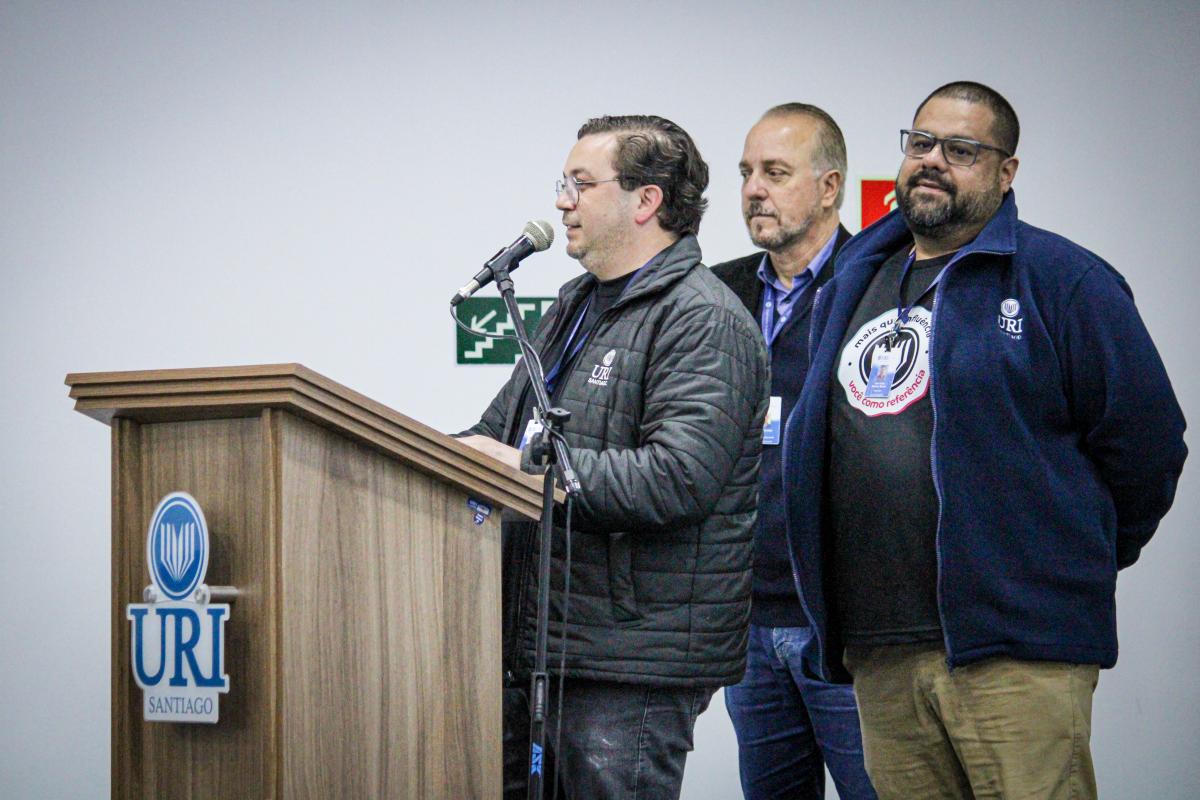 A cerimônia de abertura do evento evidenciou a preocupação da URI em promover espaços plurais de diálogo e reflexão, com a valorização da educação, da cidadania e do cuidado com a comunidade. Em seguida, o Diretor Geral da URI Santiago Professor Júlio César Wincher Soares, e o Professor Izaque Machado Ribeiro, Diretor Acadêmico, deram as boas-vindas ao palestrante.