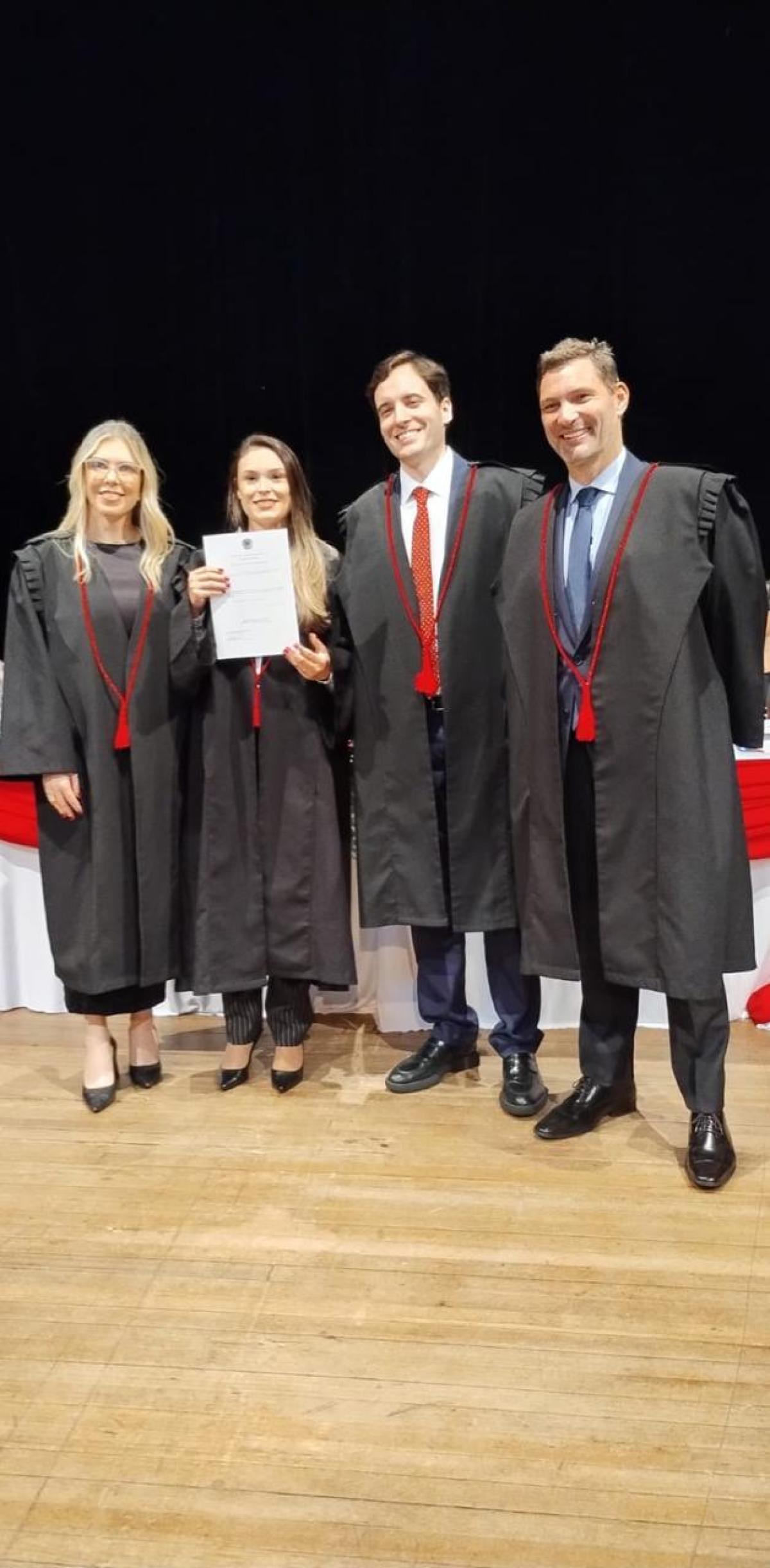 - Nesse caminho, a URI Santiago teve um papel fundamental. Em especial, o curso de Direito foi mais do que uma formação acadêmica; foi um espaço de amadurecimento, aprendizado constante e inspiração. Tive o privilégio de aprender com professores comprometidos, que sempre incentivaram a busca pelo conhecimento e pelo senso de justiça. Além disso, encontrei colegas inspiradores, com quem construí amizades e vivências que levarei para toda a vida - , enfatiza Nathasha.