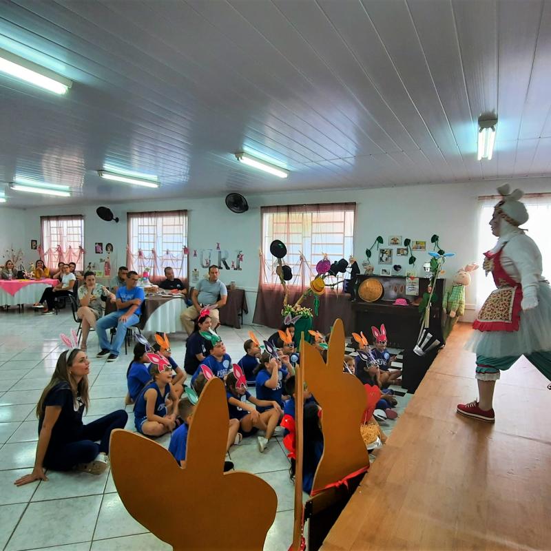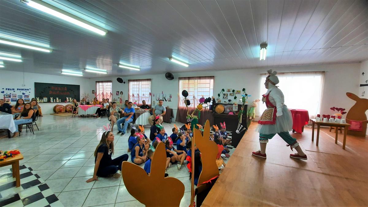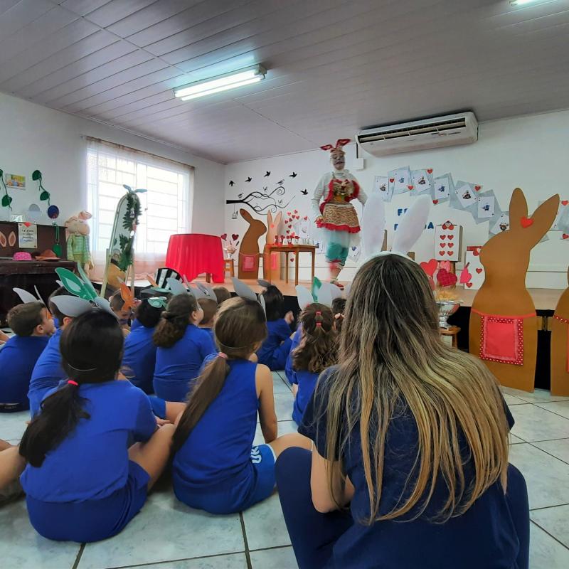 Dentro desta temática, a instituição vem encantando os estudantes, da Educação Infantil ao 5º ano, com os seguintes espaços: O Coelho da Páscoa adormeceu na árvore, O Coelho da Páscoa em um chá muito louco, O Coelho da Páscoa encontrou o chapeleiro, O Coelho da Páscoa encontrou a rainha de Copas e O Coelho da Páscoa na cozinha do castelo! Os pequenos divertem-se com contação de histórias, confecção dos próprios doces e ovos de páscoa e, o melhor, na presença de seus familiares, que interagem e assistem a tudo!