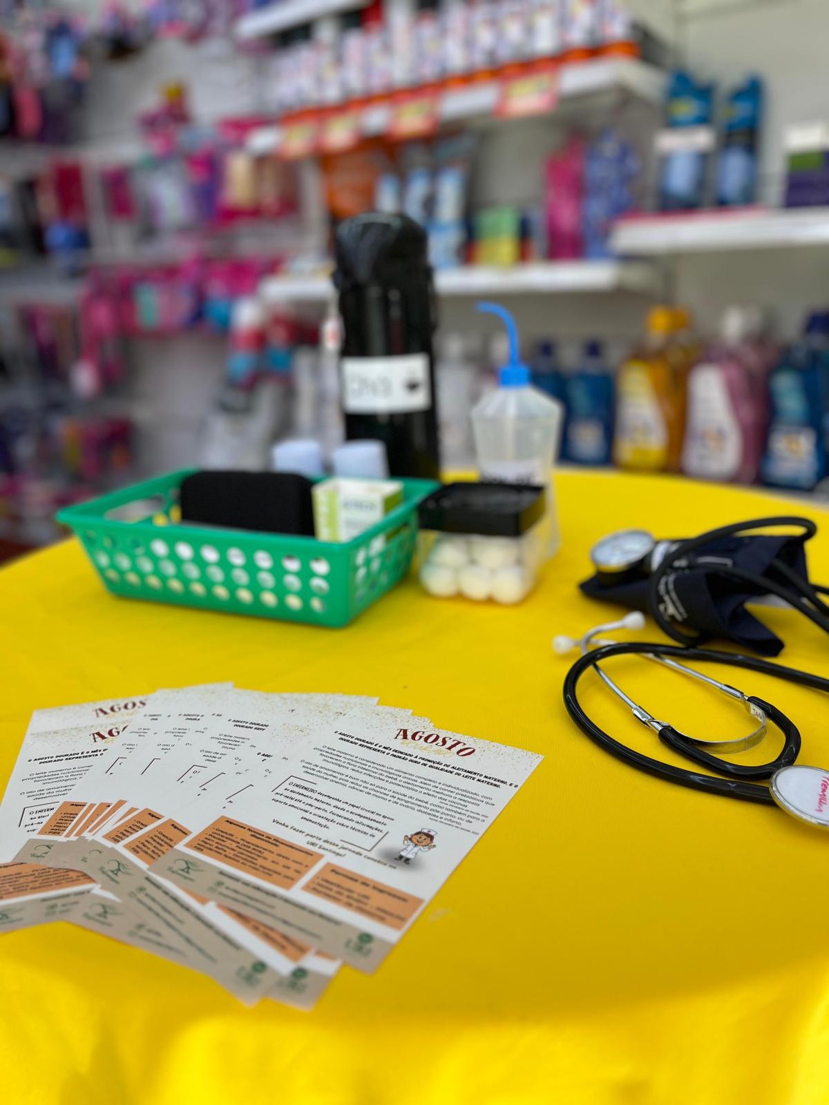 Durante a ação, foram entregues flyers sobre o Agosto Dourado, campanha nacional que ressalta a importância do aleitamento materno para o desenvolvimento saudável dos bebês e para o fortalecimento do vínculo familiar.