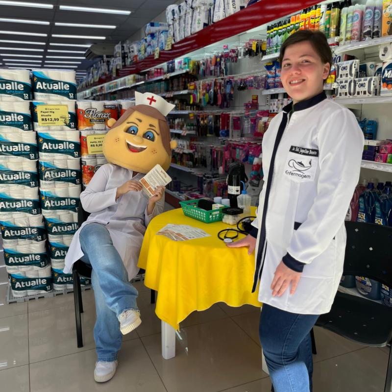 Nesta edição, o evento contou com a parceria da Drogaria Cidade (Rua Marechal Deodoro, nº 1446), onde as acadêmicas estiveram em contato direto com a população, realizando orientações de saúde, aferição de pressão arterial e esclarecimentos sobre a importância da prevenção. Além do atendimento, também houve espaço para divulgar o Curso de Enfermagem e suas contribuições para a formação de profissionais comprometidos com a qualidade de vida da sociedade.