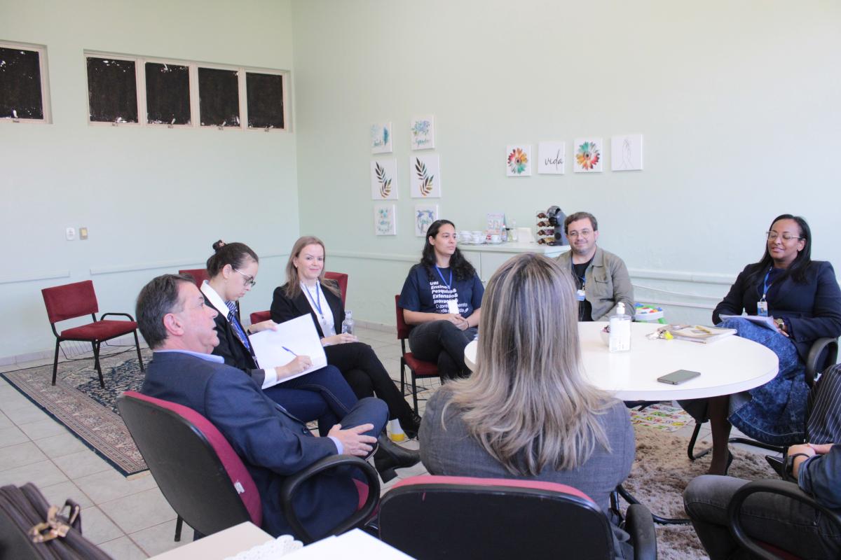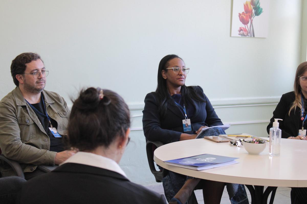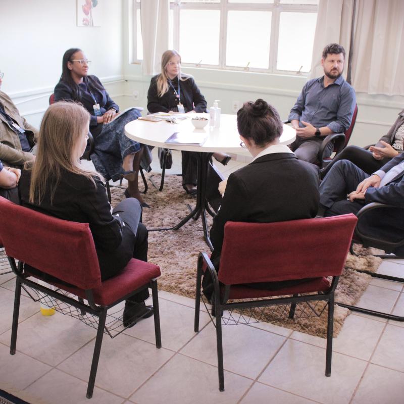 A programação incluiu uma visita aos espaços dedicados à prática acadêmica e profissional dos estudantes do Curso, como a Sala de Audiências Simuladas, o EPJUR e o espaço de Mediação e Práticas Restaurativas. Esses ambientes são mais do que laboratórios, são campos de vivência que promovem o exercício da escuta, do diálogo e da construção conjunta de soluções jurídicas.