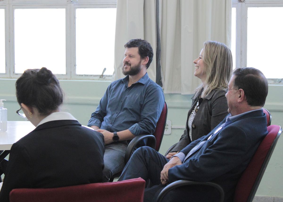 Estiveram presentes representantes da Direção do Câmpus, com a participação do Diretor Acadêmico, Professor Izaque Machado Ribeiro, da Coordenação do Curso de Direito, com a Professora Fabiana Barcelos da Silva Cardoso, além do Presidente da OAB Subseção Santiago-Jaguari, Doutor Luiz Paulo Pereira Camargo, e do representante da Justiça Federal, Diretor de Secretaria Maurício Souza Maronez. A equipe do núcleo jurídico da URI também se fez presente com a Coordenadora de Estágios, Professora Lidiane Locateli Barbosa; as Professoras Orientadoras Bárbara Alves Saikoski e Michele Noal Beltrão; a Assessora Jurídica, Nathália de Carvalho Minosso; e a Técnica Administrativa Jurídica, Amanda do Carmo Campos.