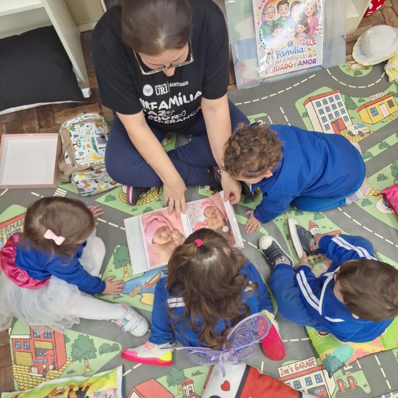 A Escola de Educação Básica da URI Santiago está desenvolvendo o projeto pedagógico itinerante “Família: lugar privilegiado de cuidado e amor”, voltado às turmas da Educação Infantil. A iniciativa é orientada pela Professora Caroline Pavanelo, na função de coordenadora pedagógica, e foi elaborada de forma coletiva pelas docentes do segmento.