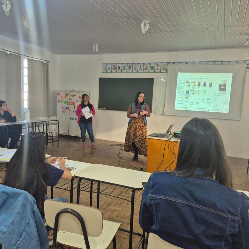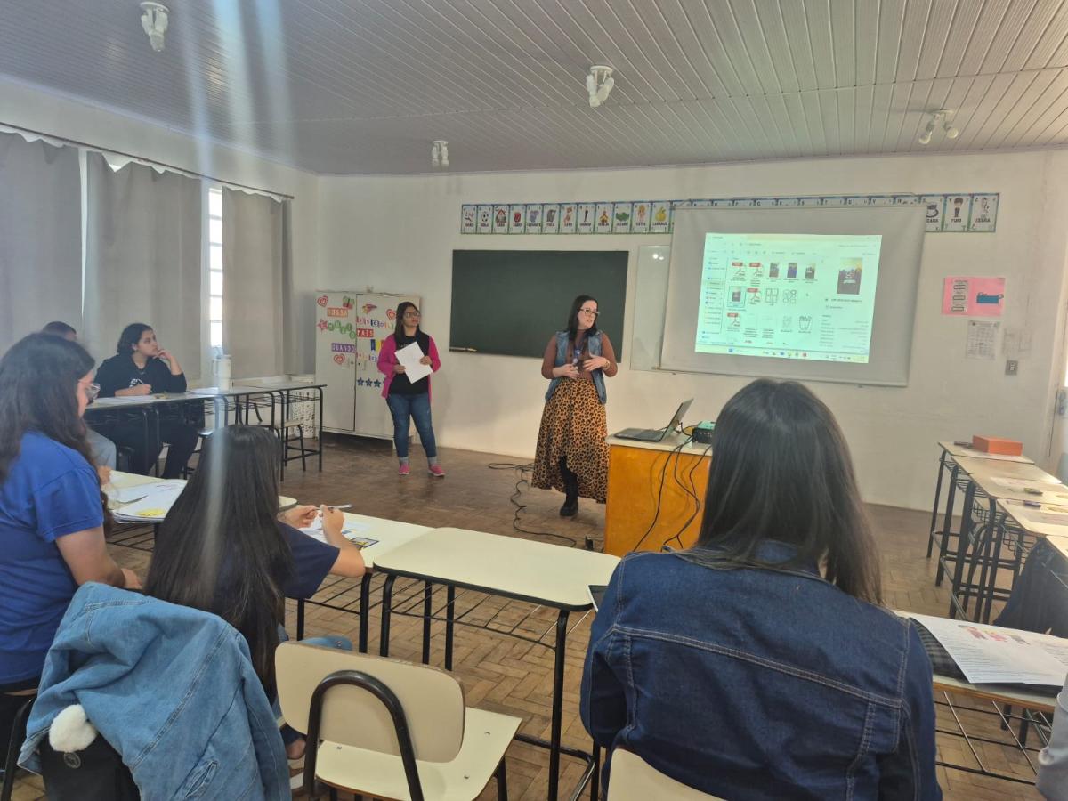 Os encontros foram mediados pela coordenadora pedagógica, Profª Msª Caroline Pavanelo, e pela educadora especial, Profª Msª Elisandra Conterato, integrante da equipe multidisciplinar da escola.