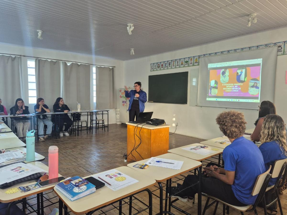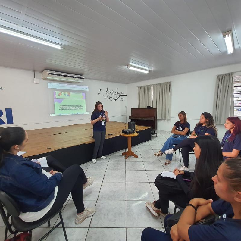 A Escola de Educação Básica da URI encerrou, no entardecer dos dias 20 e 22 de outubro, o primeiro ciclo de formação continuada sobre “Infância: potência do desenvolvimento humano”. A proposta teve como público-alvo as monitoras da Educação Infantil e dos Anos Iniciais, juntamente com as professoras da Educação Infantil, em um processo de aprofundamento teórico pautado em evidências científicas.