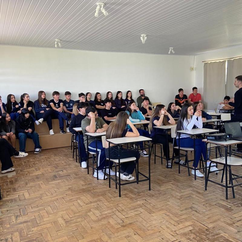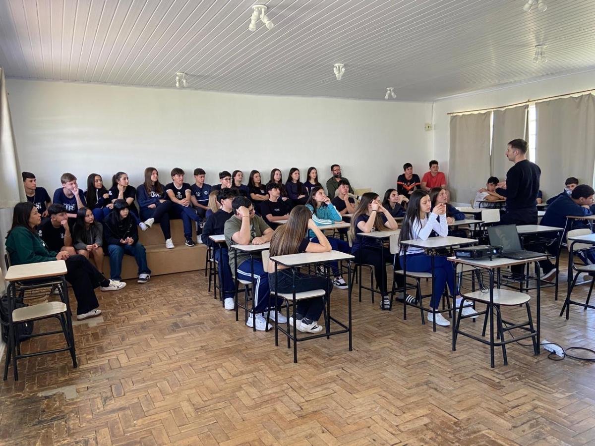 Com os estudantes, a conversa foi voltada à organização dos estudos e ao melhor aproveitamento das funcionalidades oferecidas pela Geekie One. Foram destacadas estratégias para transformar o estudo em hábito diário, a importância da revisão por meio das vídeo aulas e o uso adequado das ferramentas disponíveis, contribuindo para uma aprendizagem mais sólida e autônoma.