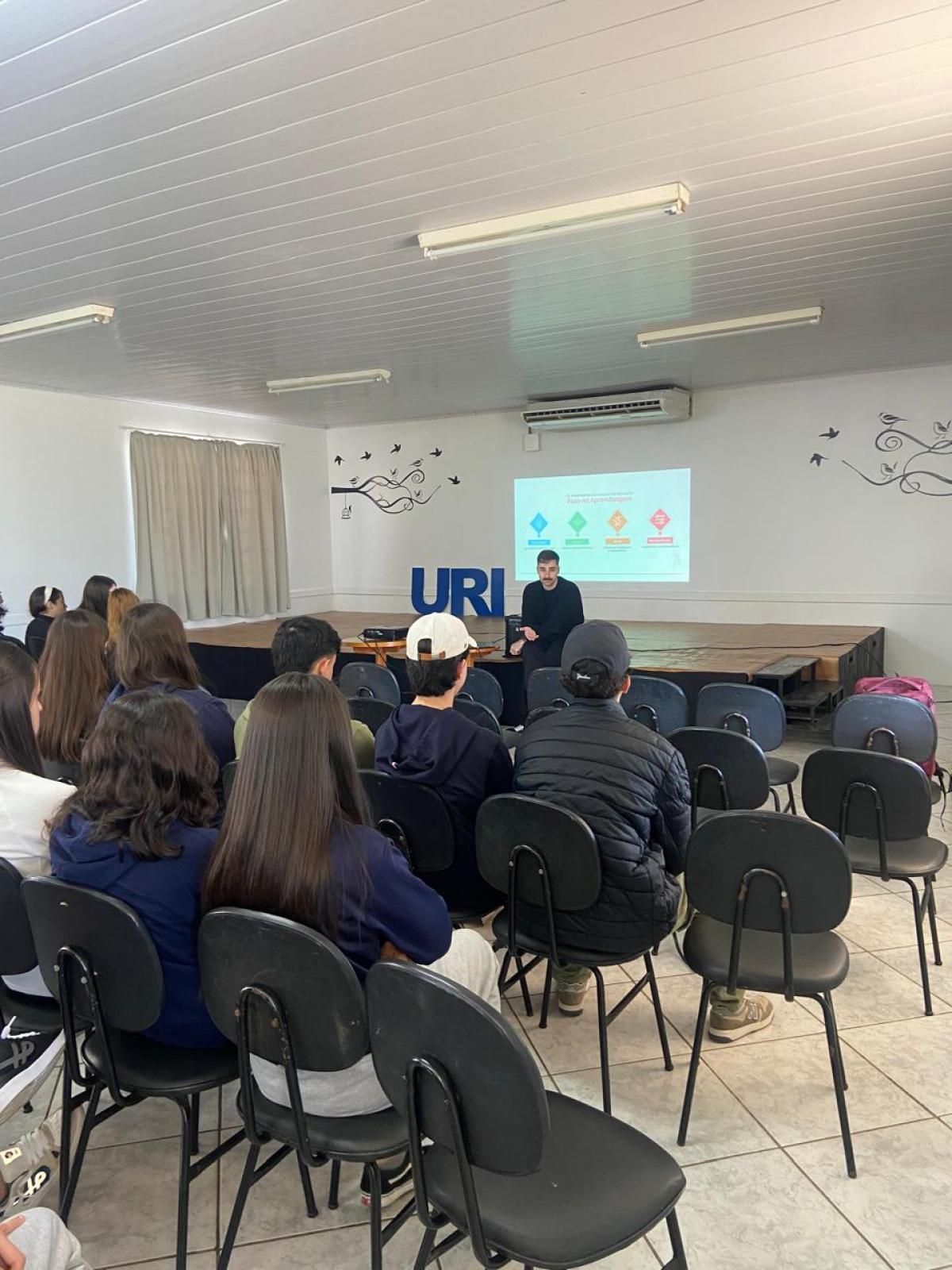 No dia 24 de setembro, a Escola da URI recebeu a visita de Vinícius Barcala, representante da Geekie One, diretamente de São Paulo. A agenda incluiu encontros com as gestoras, professores e estudantes do Ensino Médio, promovendo momentos de formação, reflexão e alinhamento sobre o uso pedagógico da plataforma.