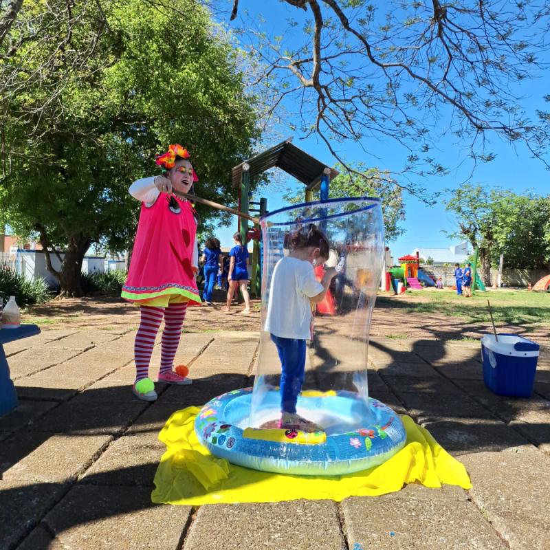 Na Educação Infantil, as Professoras Andrieli Gomes, Ariele Cristine e Lu Uberti conduziram uma rica programação integrada entre Maternal I, Maternal II e Pré I. As crianças participaram de atividades como o Dia da Fantasia e da História Divertida, Frutinhas Divertidas, Oficina de Cores e Formas, Pintando o Sete e a encantadora Festa das Bolhas, que encerrou a semana com muita leveza, música e dança.