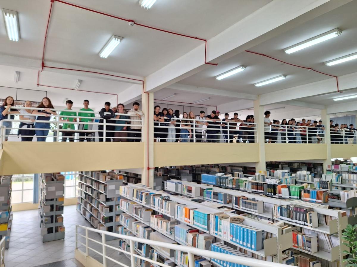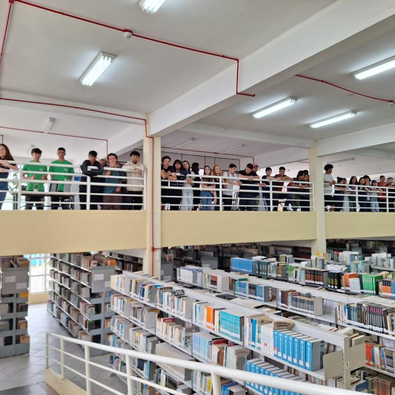 Além das atividades em laboratório, os grupos conheceram a Biblioteca Central e o Centro de Convivência, espaços que evidenciam a importância atribuída à formação integral e ao compartilhamento de saberes.