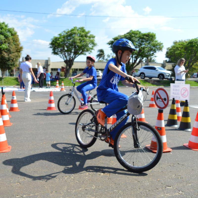 Na tarde de 11 de setembro, estudantes dos anos iniciais e ensinos fundamentais de diversas escolas de Santiago, puderam vir até a Universidade Regional Integrada do Alto Uruguai e das Missões (URI), Câmpus de Santiago, para participarem da Escolinha de Trânsito. A atividade foi realizada pelo Núcleo de Pesquisa e Extensão (NUPEX), em conjunto com o 3º Pelotão de Polícia Rodoviária Federal de Santiago e o 2º Comando Rodoviário da Brigada Militar (BRBM), no estacionamento da Universidade.