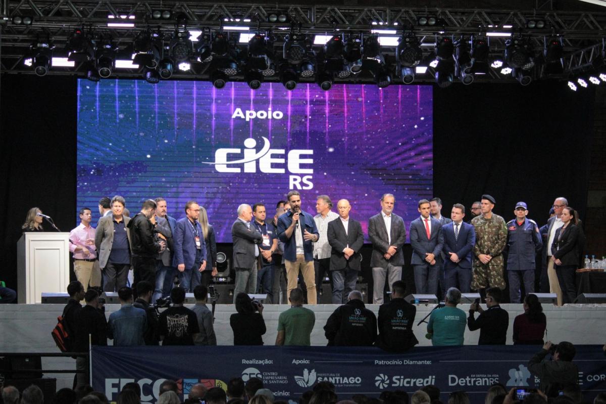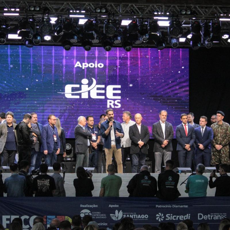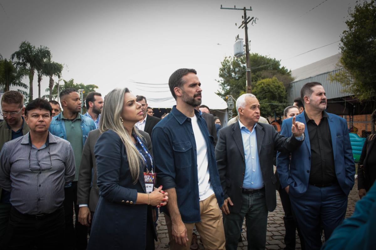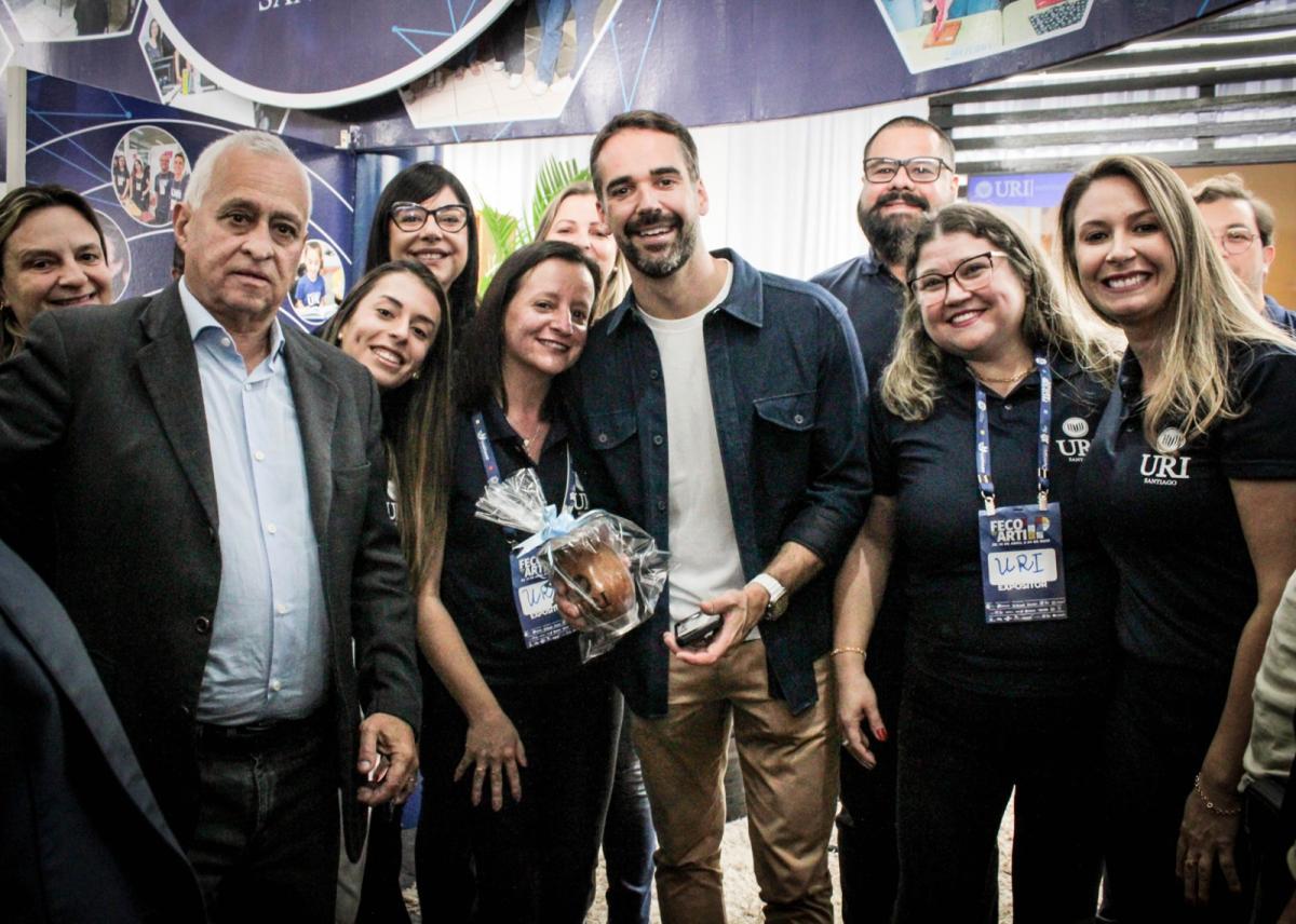 Na sexta-feira (2) o estande da URI Santiago na 17ª Fecoarti recebeu uma visita de grande relevância: o Governador do Estado do Rio Grande do Sul, Eduardo Leite, acompanhado do Vice-Governador Gabriel Souza e de outras autoridades políticas e representantes do setor público estadual.