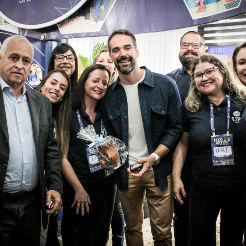 Durante o encontro, o governador conheceu de perto iniciativas da Escola de Educação Básica e do Câmpus Universitário, além das ações apresentadas no URI Living Lab, na Arena de Inovação, onde a instituição exibiu projetos em áreas como tecnologia, empreendedorismo e impacto social.