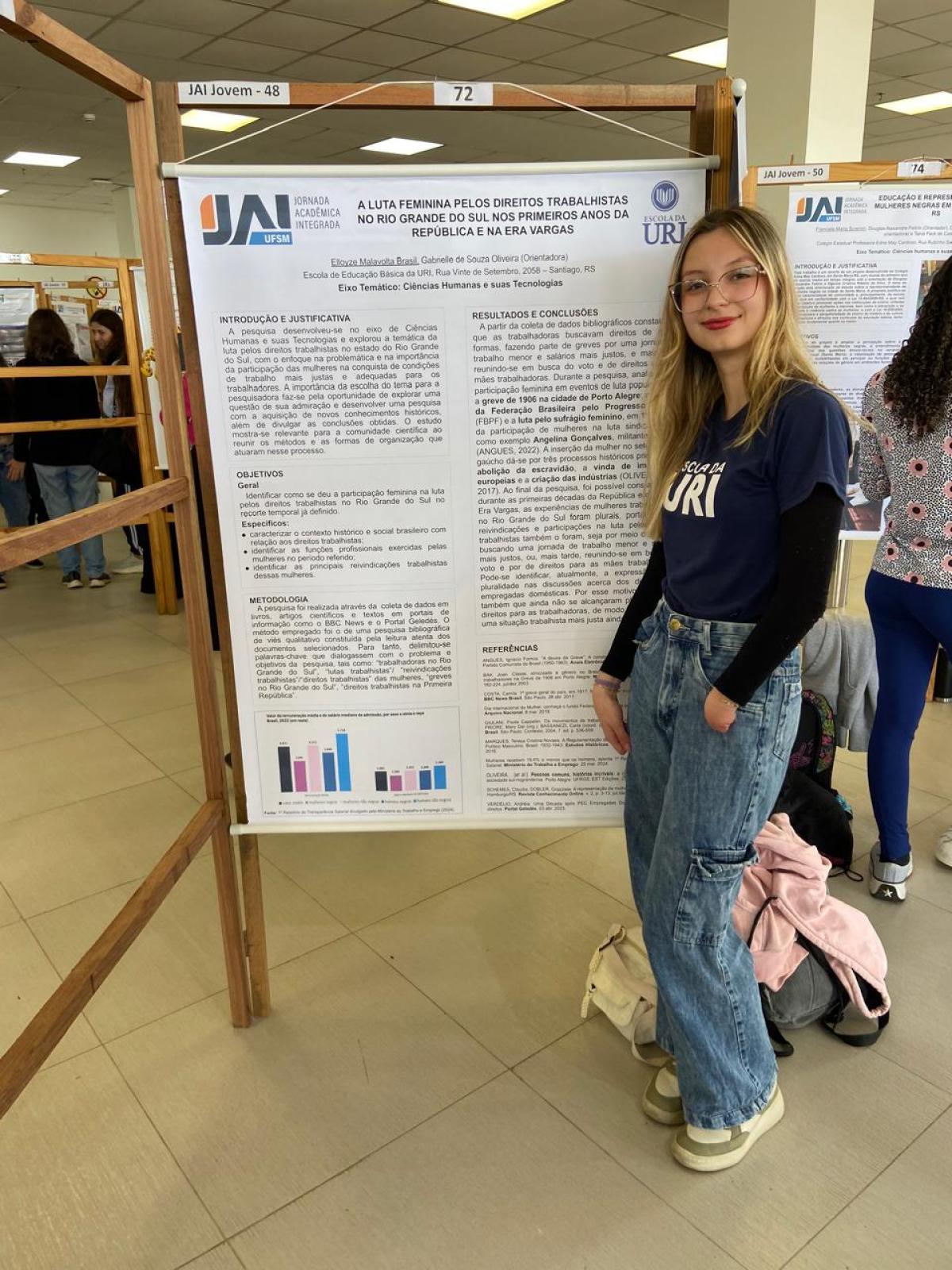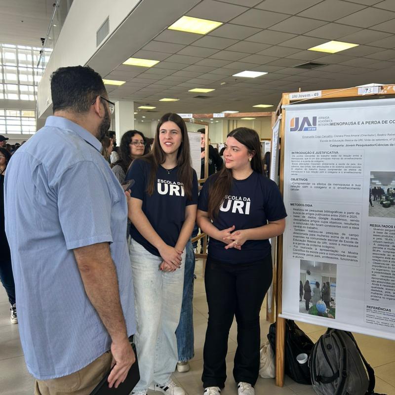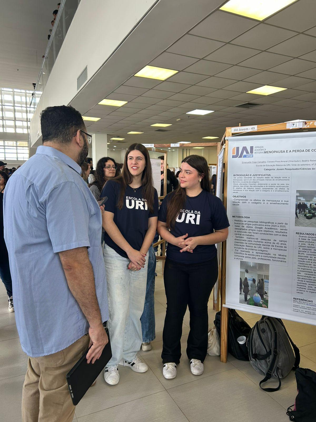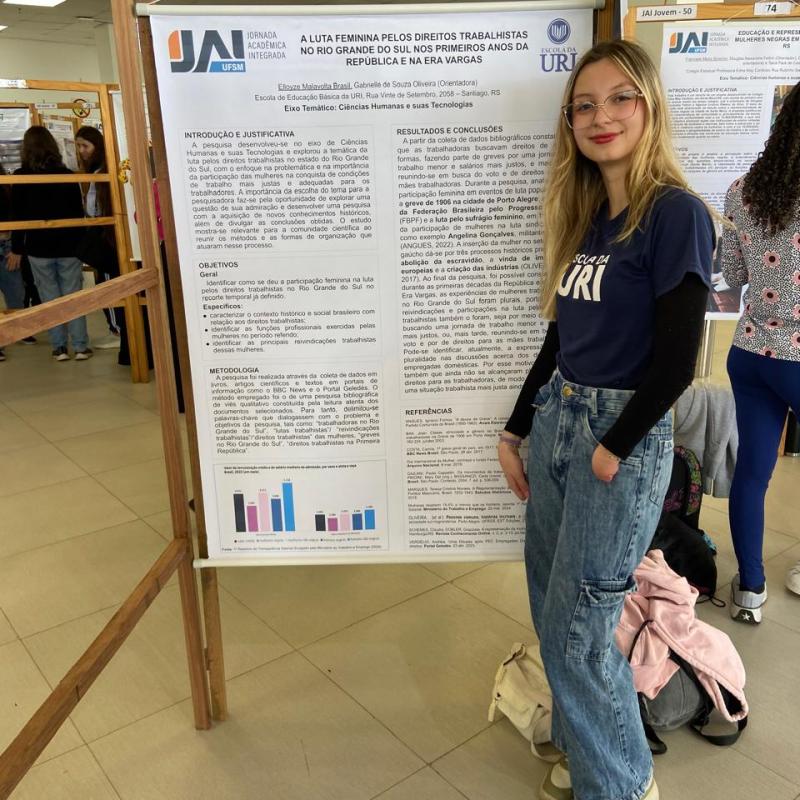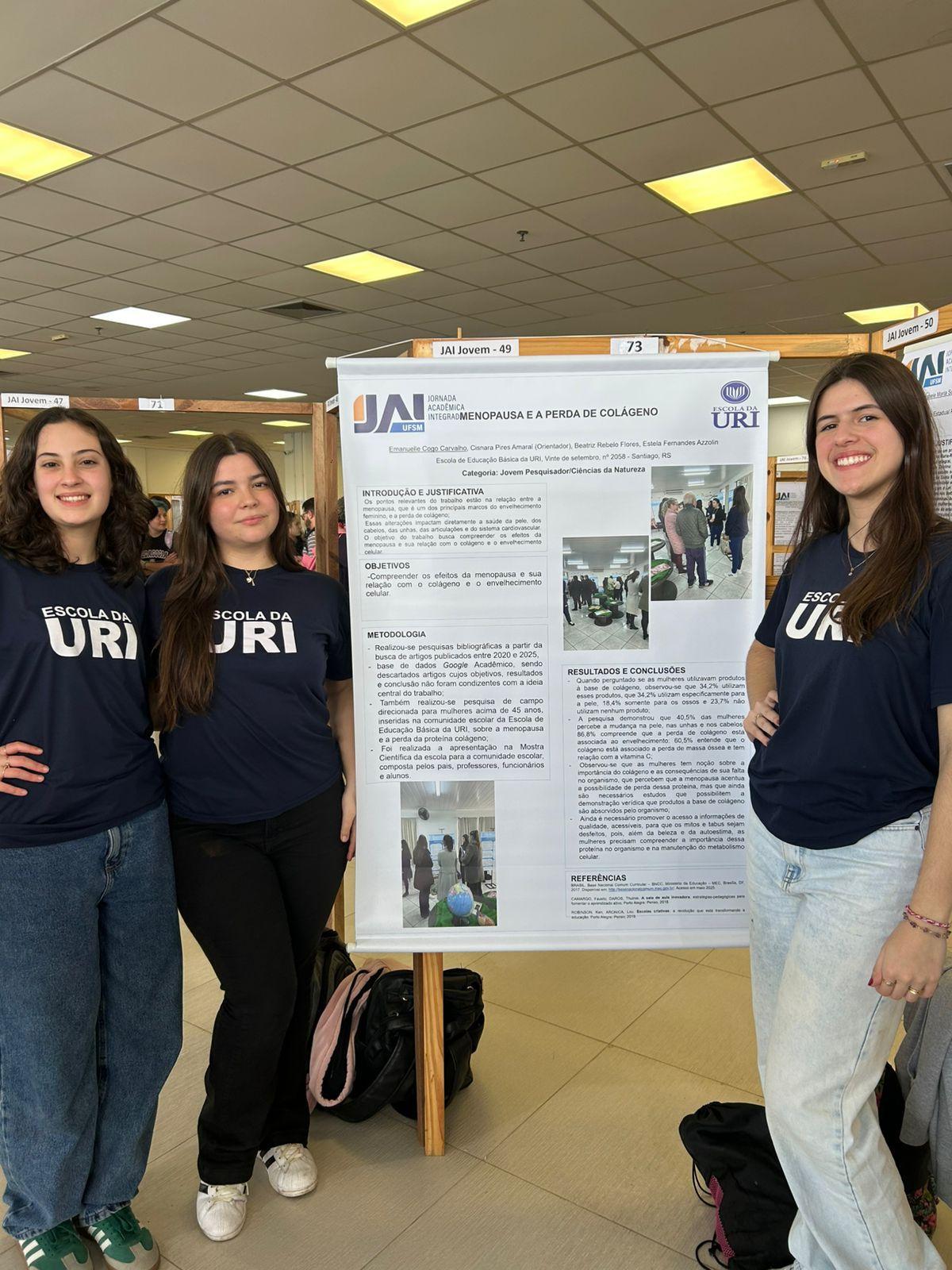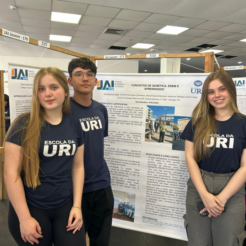Os estudantes da Escola de Educação Básica da URI Santiago participaram, na sexta-feira (31), da 7ª Jornada Acadêmica Integrada Jovem (JAI Jovem), realizada pela Universidade Federal de Santa Maria (UFSM). O evento reuniu 290 trabalhos de 44 escolas da região, em uma grande celebração da iniciação científica e da produção de conhecimento entre jovens pesquisadores.